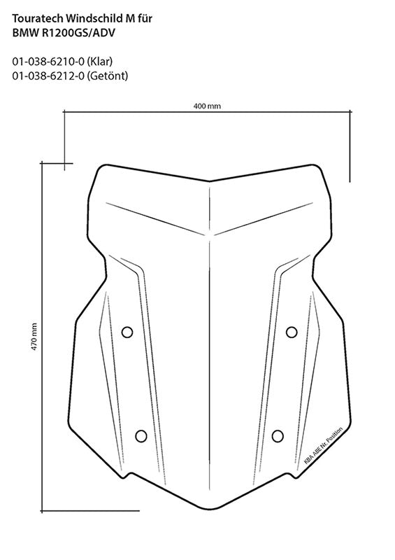 Вітрове скло Touratech, M, прозоре, для BMW R1250GS/ R1250GS Adventure/ R1200GS (LC)/ R1200GS Adventure (LC)