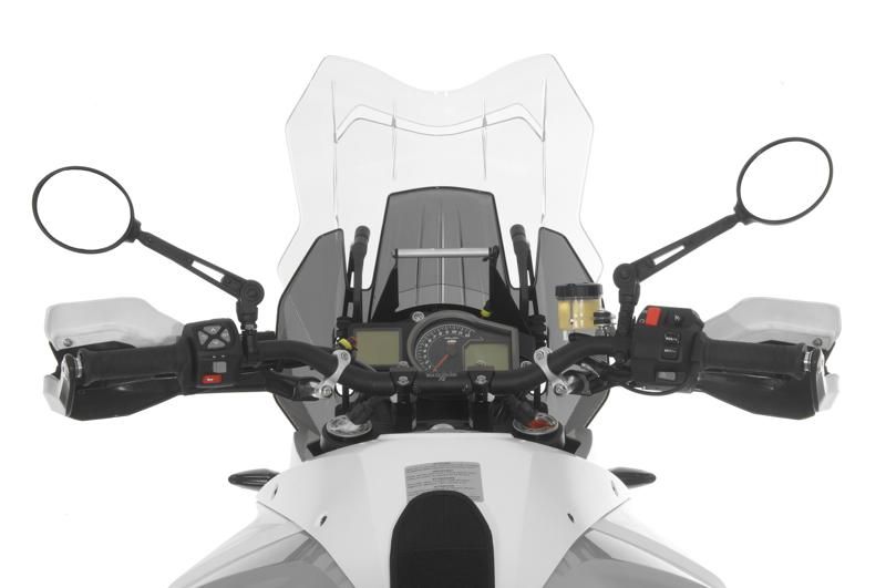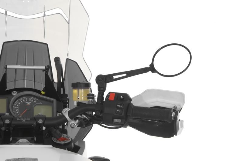 Міцне складне дзеркало заднього виду для всіх мотоциклів з правосторонньою різьбою M10x1.25- можна встановити в одинадцять попередньо визначених положень- можна використовувати ліворуч або праворуч- із сертифікатом ECE- запатентована конструкція. Два різних базових положення та діапазон регулювання 180 градусів з одинадцятьма різними положеннями фіксації охоплюють будь-які можливості регулювання дзеркала. Дзеркало заднього виду можна скласти під час руху по бездоріжжю та під час транспортування, щоб уникнути будь-яких пошкоджень. Крім того, поворотний кронштейн складається на випадок падіння мотоцикла. Це ефективно запобігає поломці поворотного важеля. Регулювальні гвинти дозволяють встановити вимоги до тиску та сили кульового шарніра та замка. Це дозволяє уникнути ослаблення з’єднання під час частого використання. Овальна форма дзеркала пропонує водієві велике поле огляду. Міцна конструкція та використання високоякісного пластику роблять дзеркало довгостроковим супутником. Комплект поставки: 1 дзеркало з інструкціями для встановлення та регулювання. Довжина 26 см. Для ваших Yamaha та KTM 390 Adv. також потрібен монтажний набір 01-040-0778-0.