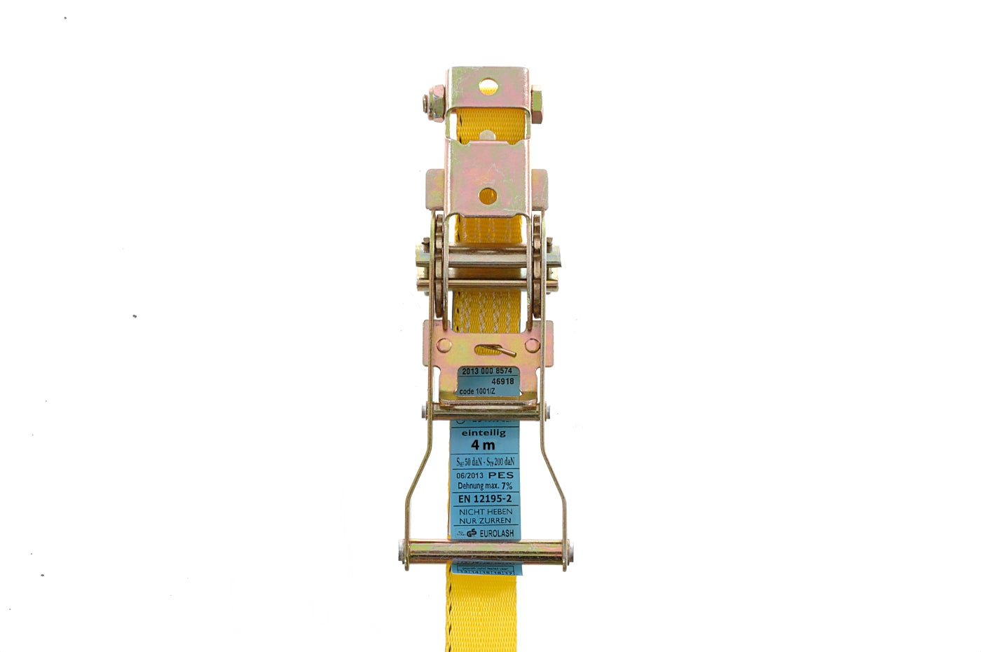 Ремінець з тріскачкою високоякісного дизайну. Щоб надійно закріпити мотоцикл на причепі або в автобусі. Без гачків на кінцях, ремінець протягується через мотоцикл і назад до тріскачки. Продається «кожним» — для прив’язування мотоцикла потрібні два ремені. Характеристики виробу: відповідно до EN 12195-2 із маркуванням GSSTF 200 daNSHF 50 daNLC 1000 daN максимальна деформація 7% Матеріал: PES (поліестер) Довжина: 4 mШирина: 25 мм