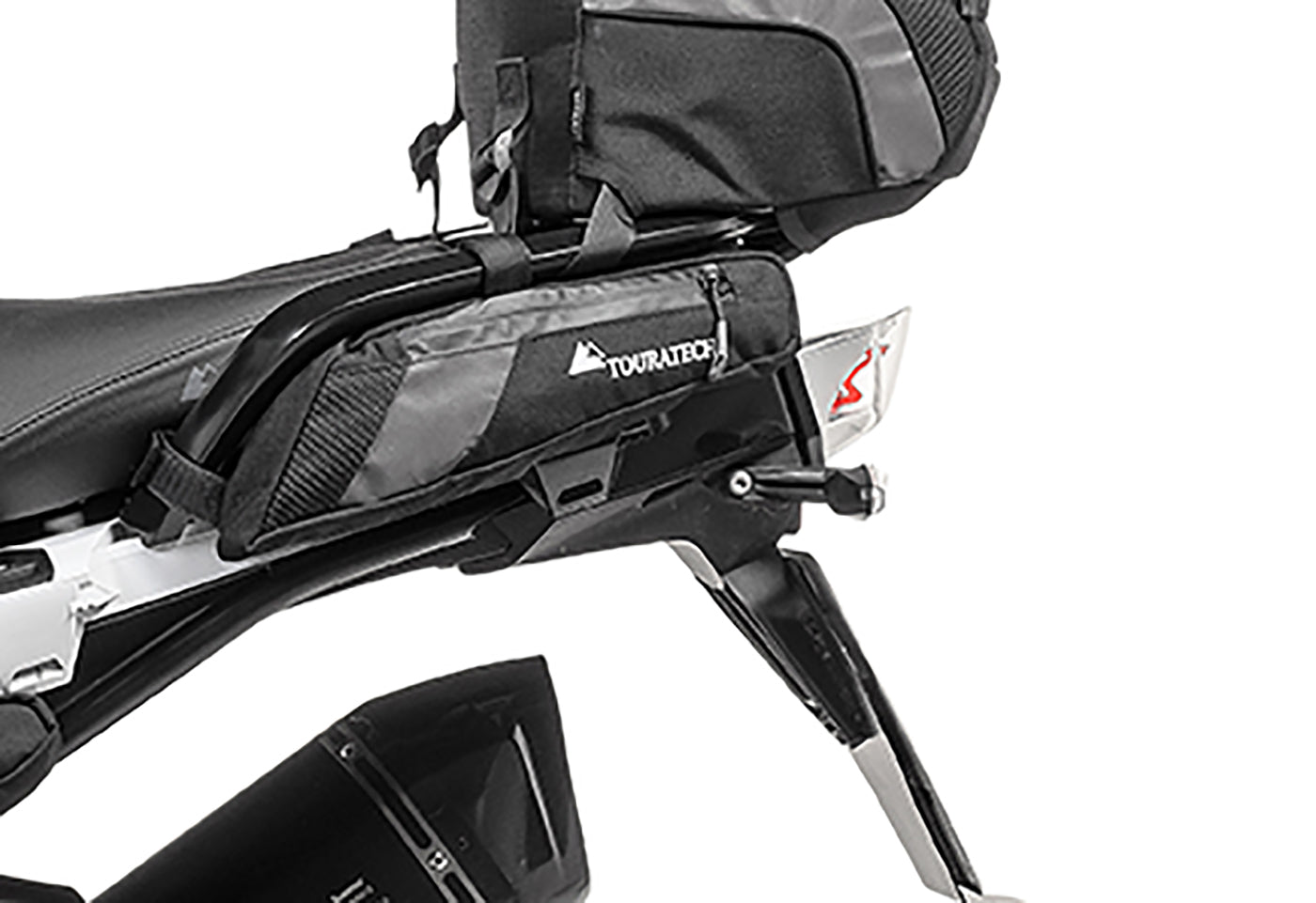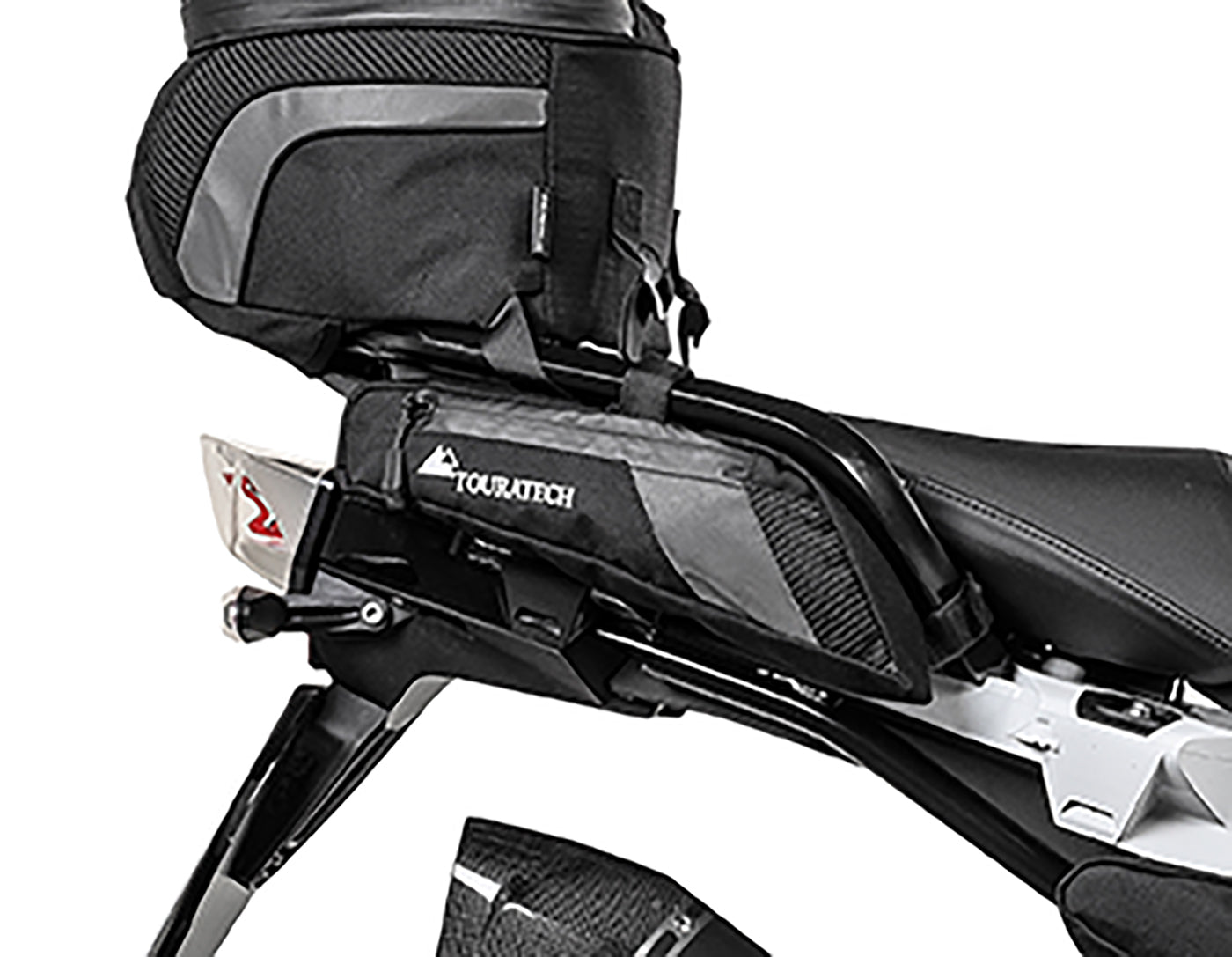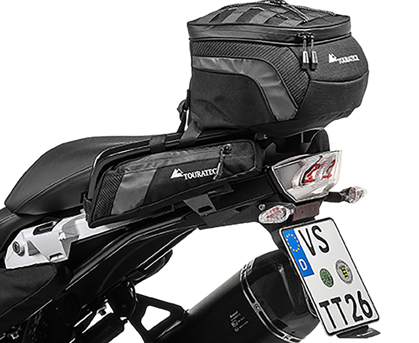 Простір ліворуч і праворуч під ручками на задньому сидінні ідеально підходить для кріплення двох бічних сумок, призначених для меншого спорядження. Вони зовсім не заважають і пропонують достатньо місця для зберігання таких речей, як аптечка, пара запасних рукавичок або найважливіші інструменти. Виготовлені з міцної тканини Cordura, ці сумки з водовідштовхувальними блискавками забезпечують легкий доступ до свого вмісту та їх можна легко зняти за потреби. Дві невеликі сумки, які добре та непомітно сидять на мотоциклі та будуть дуже корисними! Розмір: (Д x Ш x H) прибл. 37 x 10 x 9 см Об'єм: прибл. 2 х 2 літри. Абсолютно нещодавно розроблена серія м’яких багажників Touring враховує бажання багатьох водіїв туристичних подорожей мати простий і функціональний комплект м’якого багажу. Виняткова якість виготовлення та високоякісна Cordura¬Ѓ роблять продукти в асортименті Touring тривалими супутниками подорожей. Матеріал має високу якість на дотик і водовідштовхувальний, тому кілька крапель дощу не зашкодять вмісту. Майже непомітно інтегровані в сучасний дизайн протягом дня, світловідбиваючі додатки забезпечують явний плюс у безпеці в темряві. Міцні та міцні блискавки завершують високоякісні характеристики нової серії Touring.