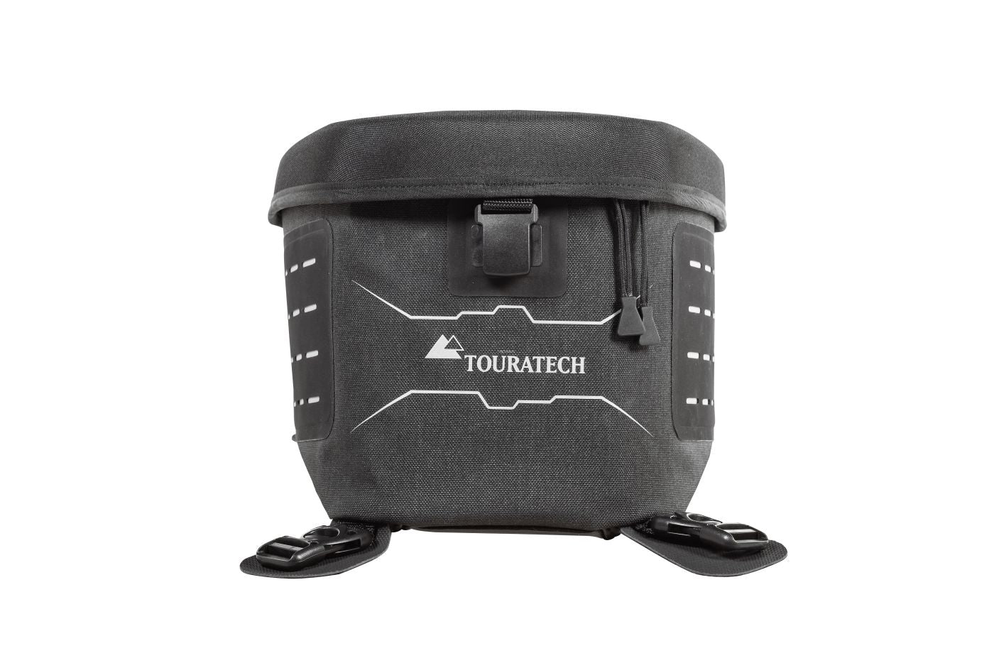 Сумка-бак «Travel» MIDI була спеціально розроблена, щоб підійти до більшості мотоциклів для пригод із короткими баками, таких як Yamaha Tenere 700, Honda CRF1100L Africa Twin або KTM 790 Adventure. Сумка на танк «Travel» MIDI поєднує в собі переваги нової серії Travel з перевіреною тисячею разів системою кріплення Touratech. Комбінація ременів і застібки дозволяє надійно закріпити сумку-бак на схилах і в той же час швидко і зручно знімати. Магнітна застібка забезпечує швидкий доступ і закриття кришки. Водонепроникна блискавка надійно зберігає вміст у сумці. З об'ємом бл. 9 літрів, вміщає все, що потрібно швидко під рукою. Сітчаста кишеня у внутрішній кришці вміщує дрібні предмети. Нова лінійка м’яких багажів Travel поєднує в собі практичну функціональність і неповторний дизайн. Мішки зварні водонепроникні, а особливо міцний матеріал Cordura гарантує тривалий термін служби. Основною особливістю цієї нової багажної системи є жорсткі кришки, які надають кофрм додаткову міцність. Також на кришці є система Molle, до якої можна прикріпити додатковий посуд. Світловідбиваючі написи та світловідбиваючі зони за бічними нашивками Molle забезпечують пасивну безпеку та характерний вигляд. Ручка забезпечує зручне поводження після зняття сумки-бак. Додатковий ремінь для перенесення можна прикріпити до D-кілець, щоб ваші руки були вільними. Комплект поставки, включаючи сумку для зберігання / багатофункціональну сумку (055-0555)