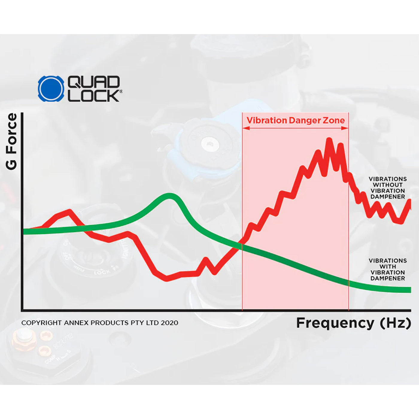 Вібрація деяких мотоциклів може вплинути на стабілізацію зображення нових смартфонів. Віброгаситель Quad Lock™ гарантує, що ви зможете надійно прикріпити свій смартфон до будь-якого мотоцикла. ДОДАТКОВО ЗАХИСТИТЬ ВАШ СМАРТФОН. Сумісний із усіма кріпленнями для мотоциклів Quad Lock¬Ѓ і аксесуарами для мотоциклів Quad Lock¬, віброгаситель Quad Lock™ зменшує понад 90% усіх високочастотних вібрацій, створюваних мотоциклами. ТОЧНІСТЬ ЗРОБЛЕНОВіброгаситель має систему подвійної підвіски з точно обробленими силіконовими втулками та поглинає вібрацію для захисту камери вашого смартфона. ПРОСТО ВСТАНОВЛЕННЯ Віброгаситель Quad Lock¬Ѓ постачається з усіма необхідними аксесуарами, щоб інтегрувати його в наявне кріплення Quad Lock¬Ѓ для мотоцикла, і його можна встановити за лічені хвилини. ПЕРЕВІРКА ПРОДУКТИВНОСТІ КРАЩИМИ Разом із вібрацією Фахівці з автомобільної та оборонної промисловості амортизатор коливань Quad Lock¬Ѓ пройшли екстремальні випробування. Він також був ретельно перевірений на практиці відданою спільнотою Quad Lock¬Ѓ. Відомо, що перелічені мотоцикли спричиняють вібрацію, що пошкоджує оптичну стабілізацію зображення смартфонів. Навіть якщо вашого мотоцикла немає в списку, ми рекомендуємо вам використовувати віброгасник Quad Lock¬Ѓ для додаткової безпеки.BMW: 310GS, F800 R/GS/GT, R Nine T, R1200GS/RT, S1000RDucati: Hypermotard, Monster, Multistrada, SupersportHarley Davidson: Fat Bob, Low Rider S, Street Bob, Wide GlideHonda: CB, CBR, CRF, Grom, ShadowKawasaki: Er-6n, KLX, Ninja, Versys, Z650, Z900RSKTM і Husqvarna: усі моделіMV Agusta: BrutalSuzuki: DRZ, GSF, GSX-R, GSX-STriumph: Bonneville, Rocket 3, Scrambler, Speed vALvALTriple, Speed vALvALTwin, ThruxtonYamaha: MT, FZ, Tracer, XJ600, XSR 700/900, R6, YZF-R1Сумісність із усіма кріпленнями для мотоциклів Quad Lock¬Ѓ і USB-зарядним пристроєм для мотоциклів. орієнтаціяНаповнений склом нейлон (верхній і нижній корпус)Точно розроблені силіконові втулки для контролю вологиВисота 23 мм і ширина 60,3 ммОСЬ ЦЕ ПРАЦЮЄ Віброгаситель захищає камеру вашого смартфона від високочастотних вібрацій. Використовувані силіконові ущільнювачі поглинають вібрацію та спеціально розроблені для гасіння високих частот (зона небезпеки вібрації), тому на нижчих частотах можна помітити більше руху.