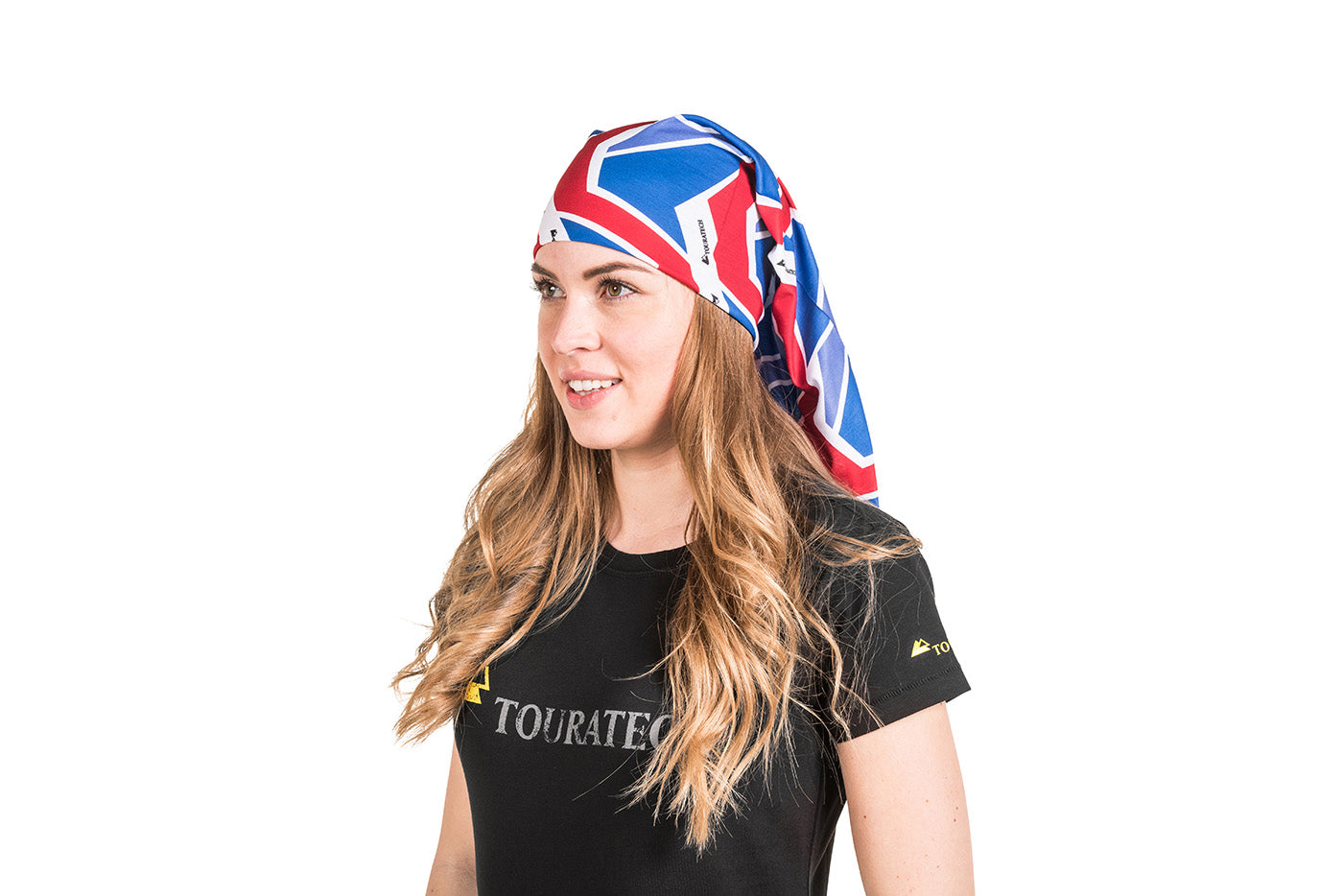 Це багатофункціональний предмет одягу в дизайні Touratech, який пропонує найвищий ступінь комфорту і всепогодний захист від вітру, снігу, сонця і т.д. Багатофункціональний головний полотнище «Sports» виконано безшовно з цілісного шматка, дуже міцне і добре тримає форму. Високотехнологічний матеріал гарантує тривалий термін служби та неймовірно швидке висихання. Чудо цієї тканини приховано в самій її універсальності - в одну мить ви можете перетворити її на всі види головних уборів, шарфів для волосся або шиї, пов'язки, хустки, захисних засобів тощо - винайдіть свій власний стиль! Матеріал: 100% поліестер Вага: 35 г