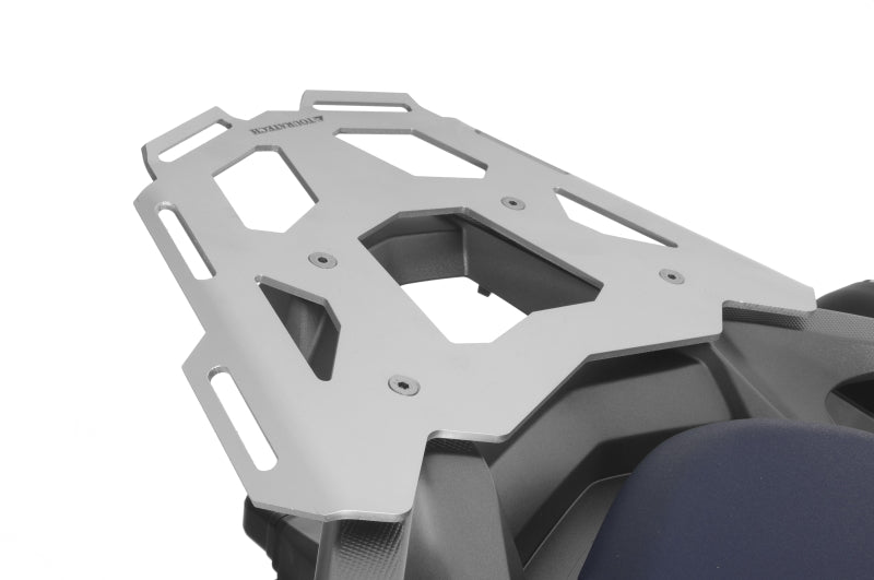 Оптимізуйте розміщення вашого багажу на вашому Africa Twin! Багажна полиця, виготовлена з алюмінію товщиною 4 мм, точно оброблена лазером і майже вдвічі збільшує корисну площу оригінальної багажної полиці Honda. Поверхня вашого багажника має чудову оптику, форма елегантно адаптується до дизайну мотоцикла. Численні виїмки та прорізи для ременів пропонують різноманітні варіанти кріплення. Широкий дизайн забезпечує міцне утримання навіть великих предметів багажу. Стійка може бути встановлена швидко і легко.