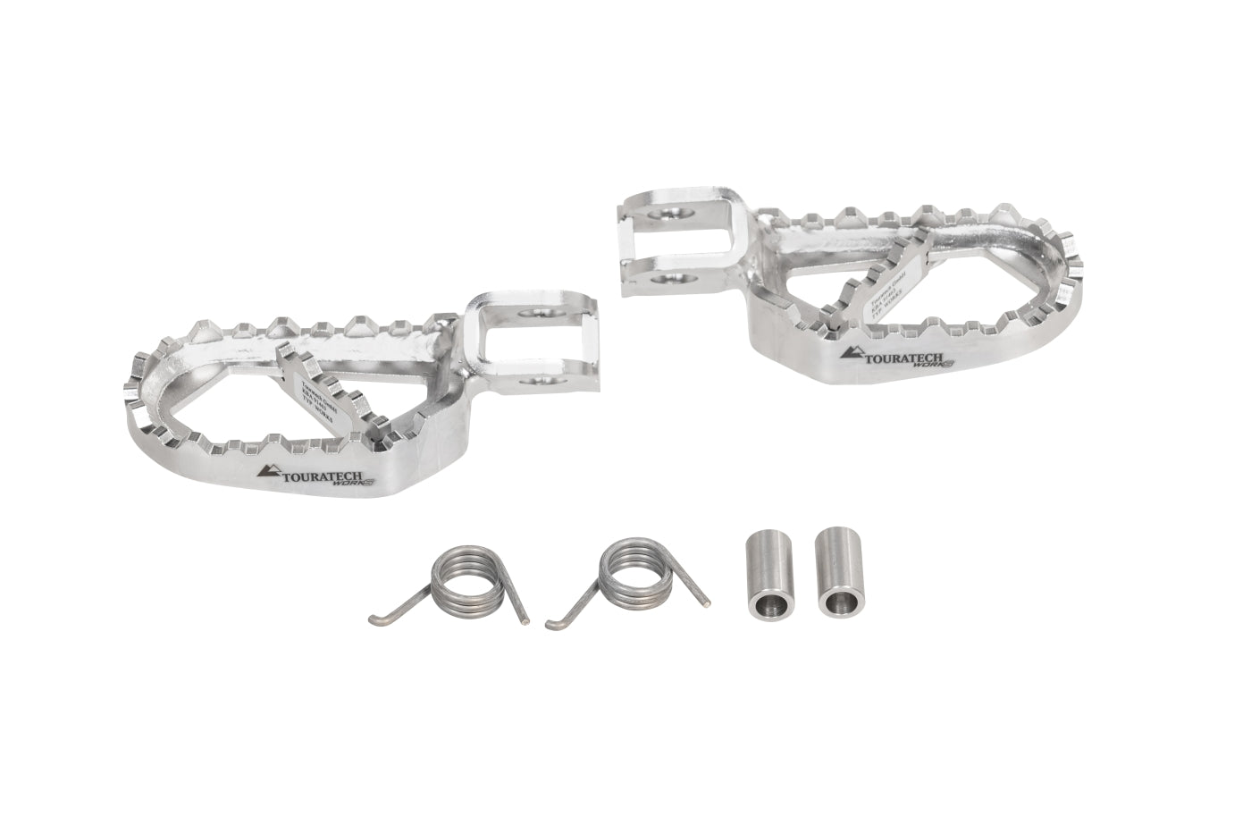 Підніжки Touratech WORKS з нержавіючої сталі. Найкраще, що Touratech може запропонувати для ваших черевиків. Спеціально розроблений відповідно до специфікацій Touratech Works Racing Team. Характерна форма профілю з нержавіючої сталі шириною 52 x 90 мм і товщиною 4 мм добре підходить для ваших черевиків і пропонує ідеальне поєднання зчеплення та самоочищення. Заокруглені краї запобігають пошкодженню підошви черевиків, відкрита конструкція дозволяє глині та камінню в протекторі провалюватися крізь підніжки, а профіль черевика надійно тримає підошву. Витончена конструкція та зовнішні фаски забезпечують кращий кліренс, що є великою перевагою під час мандрівки по глибоких коліях порівняно зі звичайними підніжками для ендуро або стандартними продуктами. Примітка: Підніжки на 20 мм нижчі за оригінали (без гумової накладки) і, таким чином, забезпечують набагато більш спокійний кут колін. Підніжки Touratech Works були спеціально посилені в точці кріплення, що робить їх значно менш чутливими до ударів. впливи. Продукти Works також є оптичною родзинкою. Піскоструменева нержавіюча сталь зі спеціальним лазерним написом робить цей продукт справді помітним, а також дає візуальне вказівку на його благородне походження в екстремальному ендуро.- 52 мм завширшки та 4 мм завтовшки профіль з нержавіючої сталі, який добре підходить для ваших черевиків- Ідеальне поєднання зчеплення та самоочищення- З більш тонкою конструкцією для кращого кліренсу- Значно менш сприйнятливий до ударів- Посилене кріплення point- З очищеною поверхнею та лазерним написом для чудової обробки- Німецьке схвалення типу ABE