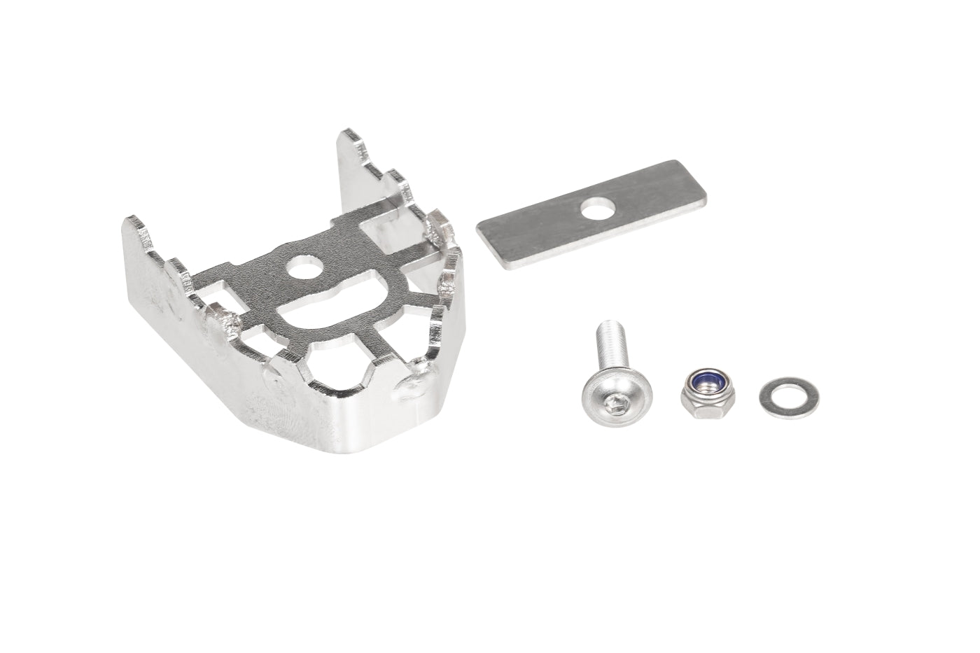 Надійна опора на гальмо є основною необхідністю, особливо під час мандрівки по бездоріжжю. Ось чому подовжувач педалі гальма, який ми розробили для Pan America, має зазубрини, як і наші перевірені *Працює* підніжжя для дальніх дистанцій. Його площа поверхні значно більша, ніж оригінальна частина, щоб ваш черевик ніколи більше не промахнувся з педаллю. Розширення на 4 мм вище і на 10 мм ширше оригіналу. Подовжувач виготовлений з електрополірованої нержавіючої сталі товщиною 2 мм, що робить його практично незнищувальним. Встановити його на наявні точки кріплення просто та зрозуміло. Тільки для важеля розриву НЕ-"Special"!