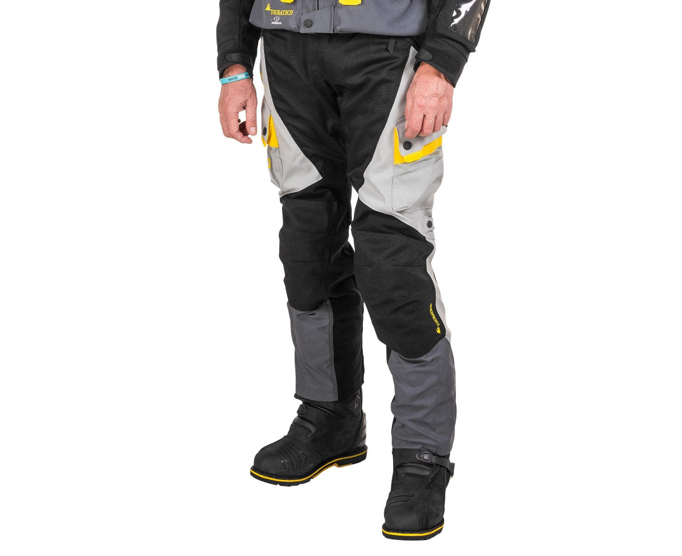 Розумним кроком буде спершу спустошити кишені та покласти необхідні речі в кишені цього верхнього одягу. Вони просторі, легкодоступні та, звісно, водонепроникні! Touratech обрала тришаровий ламінат GORE-TEX® (CORDURA®). У цьому текстильному композитному матеріалі внутрішня підкладка, високоякісна дихаюча мембрана GORE-TEX® і міцний зовнішній шар скріплені в одну тканину. Це означає, що ламінат не надто громіздкий, не здувається і завжди щільно прилягає. Звичайно, найважливішими властивостями комбінезону є вітро- та водонепроникність. А оскільки тришаровий ламінат GORE-TEX® (CORDURA®) є активним матеріалом, костюм повністю пропускає повітря.