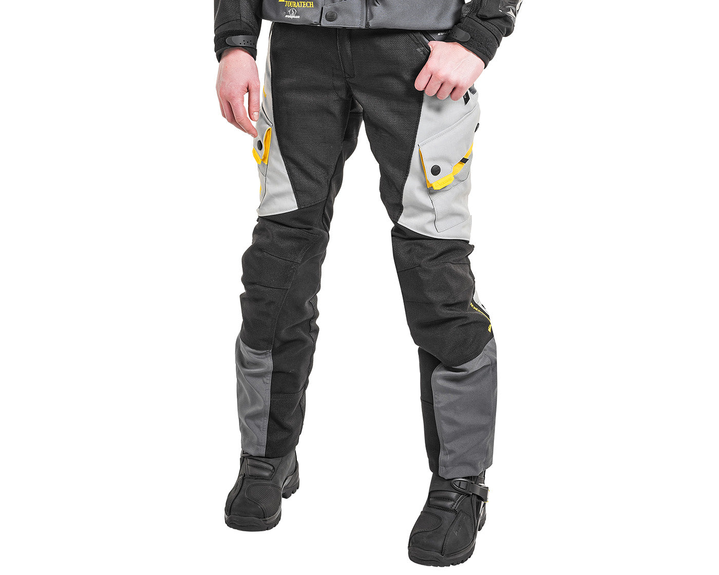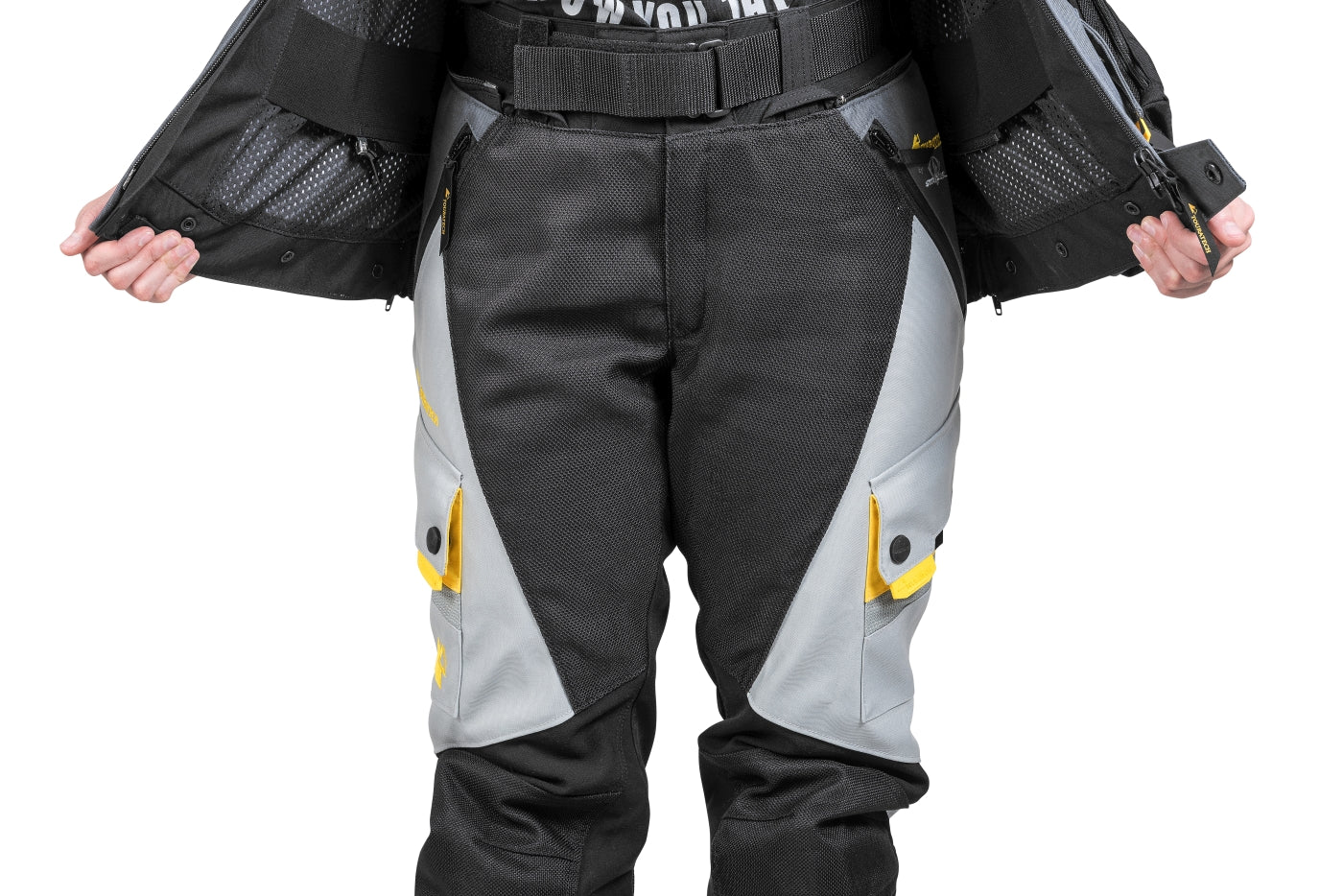 Розумним кроком буде спершу спустошити кишені та покласти необхідні речі в кишені цього верхнього одягу. Вони просторі, легкодоступні та, звісно, водонепроникні! Touratech обрала тришаровий ламінат GORE-TEX® (CORDURA®). У цьому текстильному композитному матеріалі внутрішня підкладка, високоякісна дихаюча мембрана GORE-TEX® і міцний зовнішній шар скріплені в одну тканину. Це означає, що ламінат не надто громіздкий, не здувається і завжди щільно прилягає. Звичайно, найважливішими властивостями комбінезону є вітро- та водонепроникність. А оскільки тришаровий ламінат GORE-TEX® (CORDURA®) є активним матеріалом, костюм повністю пропускає повітря.