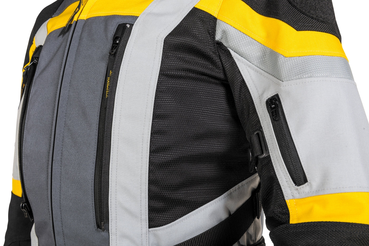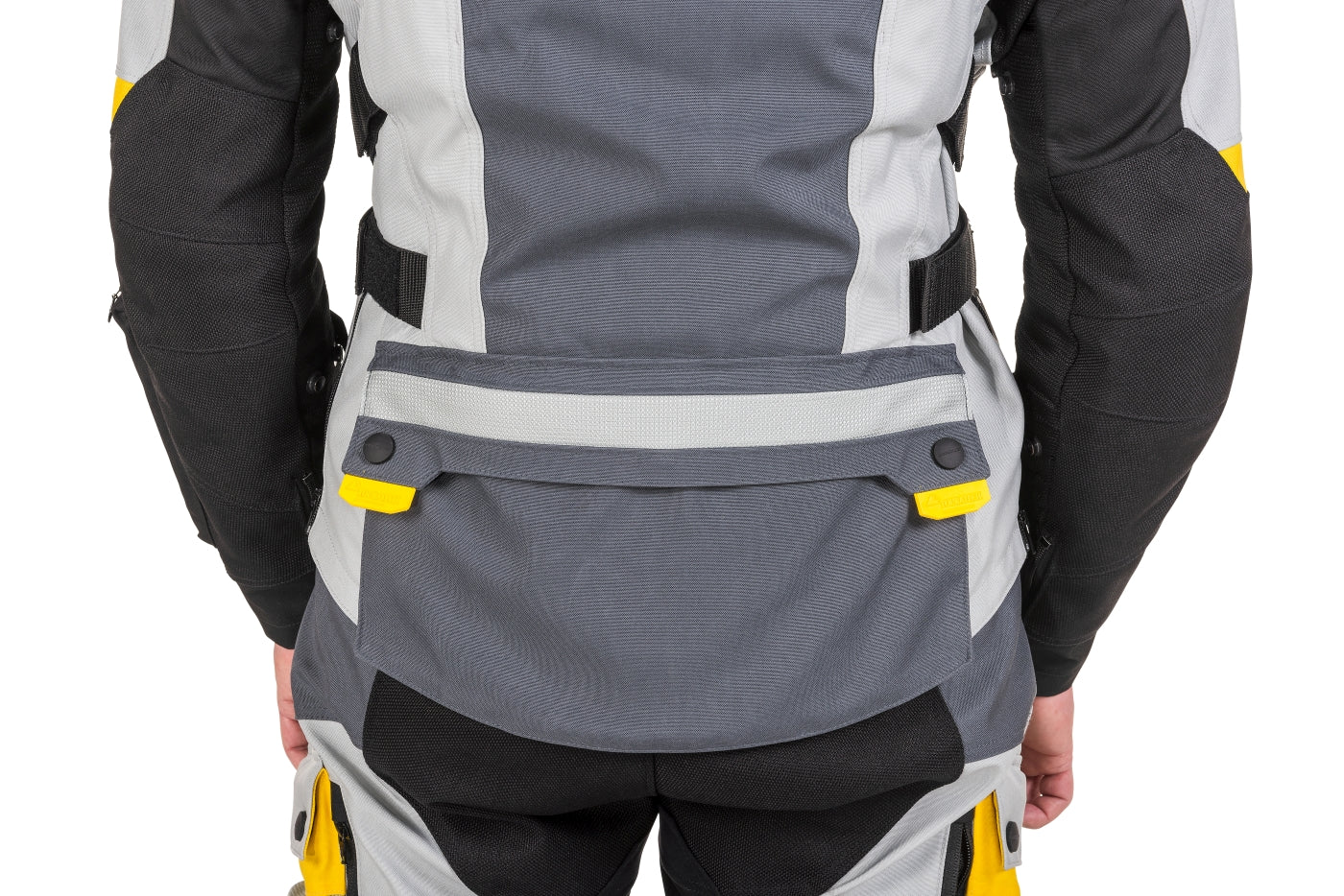 Речі, які завжди повинні бути під рукою, можна помістити в дві водонепроникні зовнішні кишені куртки. Простора кишеня на задній частині куртки також забезпечує місце для великих речей. Ми зробили кишеню для смартфона на передпліччі більшою, щоб вона містила більші пристрої. Цінні речі ховаються у просторих внутрішніх кишенях для кращого захисту. Невелика кишеня на блискавці на плечі — ідеальне місце для ключа без ключа сучасних мотоциклів.