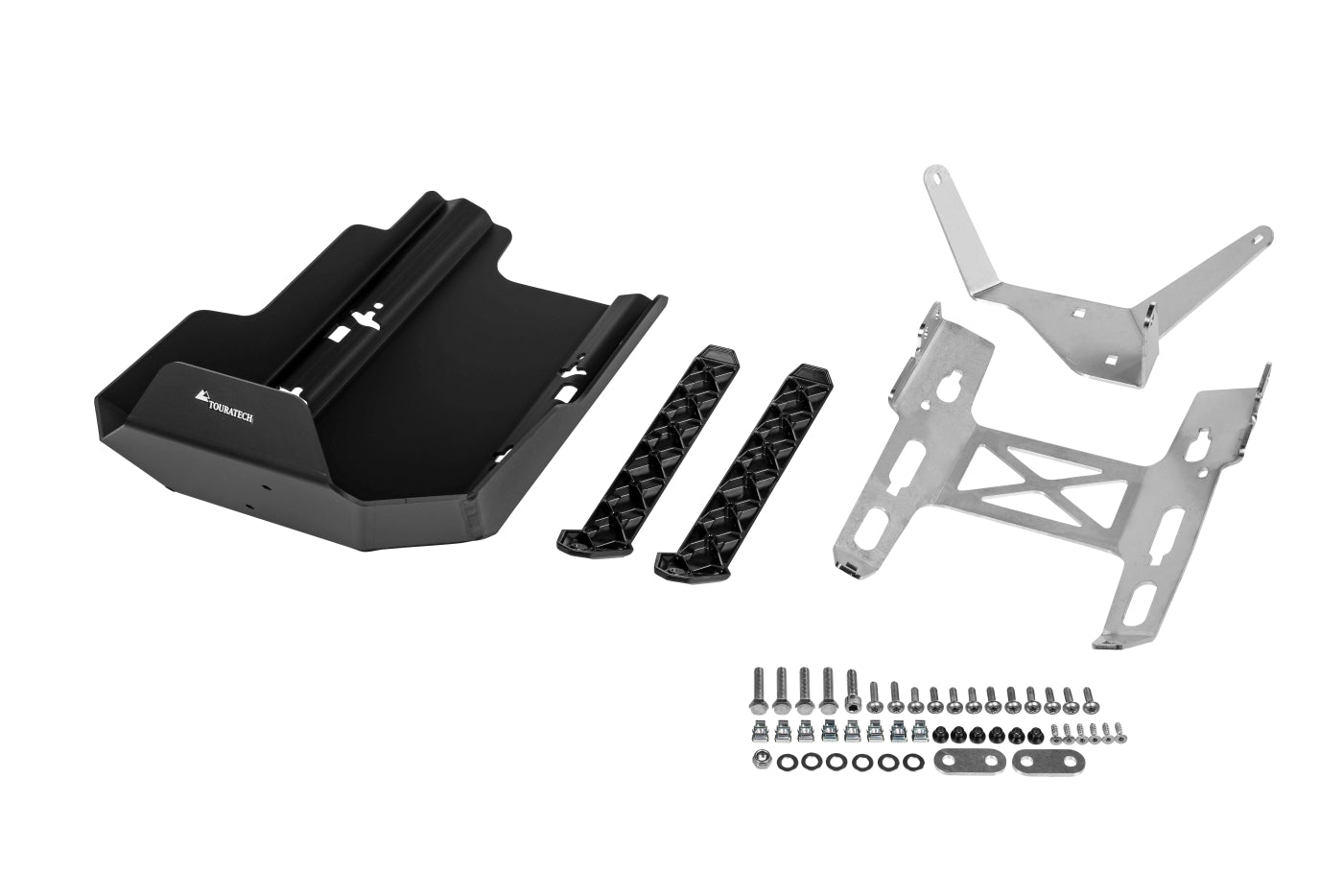 Створюючи T7, розробники Yamaha створили мотоцикл, який практично запрошує вас взяти його на екскурсію позашляховиками. Наша команда розробників змогла зробити низку подальших покращень його позитивних позашляхових характеристик. Цей захист двигуна - абсолютна революція! Touratech надає великого значення його міцності та функціональності. Серйозні пошкодження, такі як отвори в блоці двигуна, можна ефективно запобігти, встановивши великий кожух двигуна Touratech. Максимальна міцність забезпечується кількома складеними виступами в алюмінієвій базовій пластині товщиною 4 мм, а дві додаткові нижні пластини кріплення з нержавіючої сталі товщиною 4 мм на двигуні забезпечують розподіл сили удару на велику площу через 8 точок кріплення. Дорожній просвіт не обмежується цими двома опорними пластинами. Для Yamaha Tenere 700 з 2021 року (Євро 5)