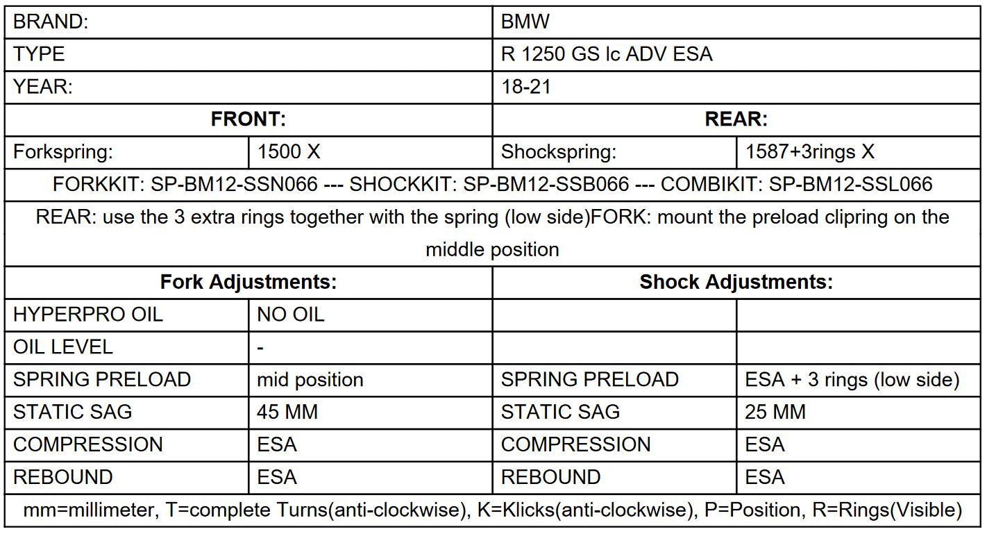 Прогресивні змінні пружини для амортизаторів для BMW R 1250 GS LC ADVENTURE ESA 2018 - 2021. Цей набір прогресивних змінних пружин розроблено, щоб ідеально відповідати вашому мотоциклу та запропонувати надзвичайно покращену реакцію та більшу безпеку в екстремальних ситуаціях. Заміна передньої та задньої пружин призведе до значного покращення та більшого задоволення від мандрівки на вашому мотоциклі. Поставка включає: змінну пружину для оригінального переднього амортизатора - змінну пружину оригінального заднього амортизатора - докладні інструкції з монтажу. Наша рекомендація: заміна пружин для заміни повинна проводитись у спеціалізованій майстерні. У вас є додаткові запитання? Будемо раді проконсультувати Вас особисто. Електронна адреса: suspension@touratech.de Телефон +49 (0)7728-9279-1555 Будь ласка, скористайтеся нашим аркушем перевірки шасі та надішліть нам заповнену форму.