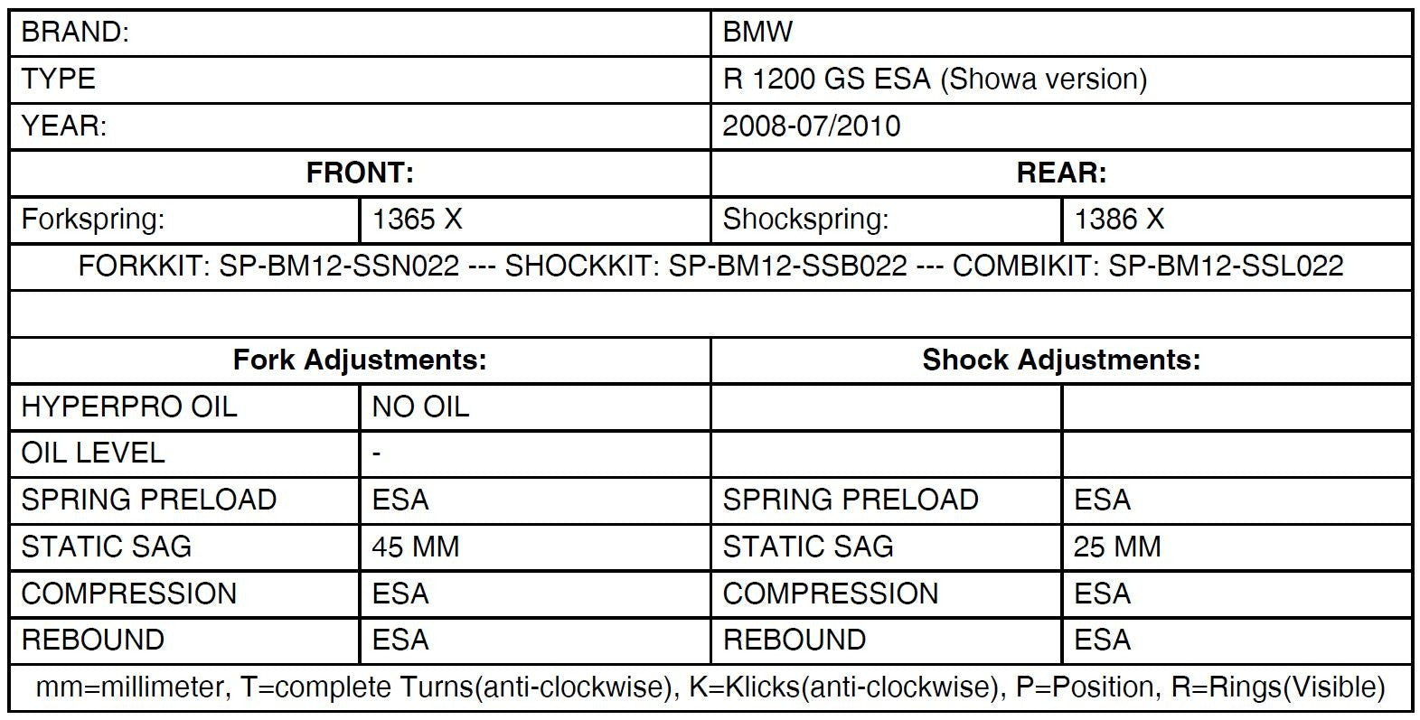 Цей комплект прогресивних змінних пружин був розроблений, щоб ідеально відповідати BMW R1200GS ESA, і пропонує «надзвичайне покращення» реакції та більшу безпеку в екстремальних ситуаціях. Заміна передніх і задніх пружин призведе до значного покращення та більшого задоволення від мандрівки на вашому мотоциклі. Інформація: підходить лише для * BMW R1200GS 2007-2010 з оригінальними амортизаторами Showa BMW ESA *Доставка включає детальні інструкції зі встановлення (німецькою/англійською) Наша рекомендація: заміна пружин для заміни повинна проводитись у спеціалізованій майстерні, особливо для амортизаторів ESA. Доставка включає- Замінна передня пружина для оригінального амортизатора BMW.- Замінна пружина ззаду для оригінального амортизатора BMW.- Інструкції зі встановлення. Якщо у вас виникнуть додаткові запитання, ми будемо раді вам проконсультувати. Зв'яжіться з нами.