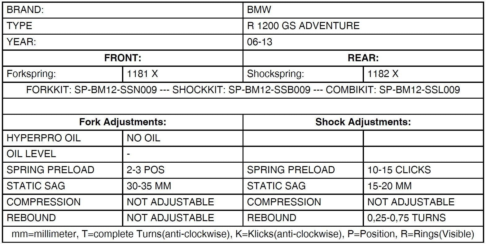 Цей комплект прогресивних змінних пружин був розроблений, щоб ідеально відповідати BMW R1200GS ADV, і пропонує «надзвичайне покращення» реакції та більшу безпеку в екстремальних ситуаціях. Заміна передніх і задніх пружин призведе до значного покращення та більшого задоволення від мандрівки на вашому мотоциклі. Інформація: підходить лише для * BMW R1200GS 2006-2013 з оригінальними амортизаторами Showa BMW ADV * Поставка включає детальні інструкції зі встановлення (німецькою/англійською) Наша рекомендація: заміна пружин для заміни повинна проводитись у спеціалізованій майстерні, особливо для амортизаторів ESA. Доставка включає- Замінна передня пружина для оригінального амортизатора BMW.- Замінна пружина ззаду для оригінального амортизатора BMW.- Інструкції зі встановлення. Якщо у вас виникнуть додаткові запитання, ми будемо раді вам проконсультувати. Зв'яжіться з нами.