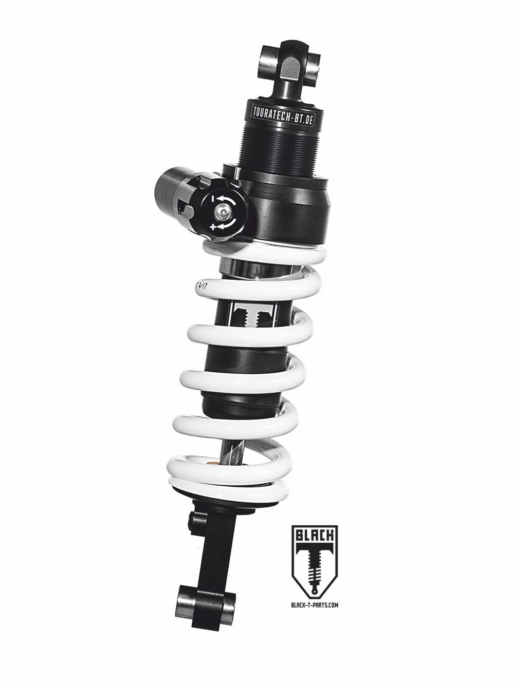 Більше продуктивності та комфорту для вашого BMW RnineT - Racer/Pure з амортизатором Black-T типу Stage3. Незалежно від того, чи збираєтеся ви проїхатися через багато кривих або провести гарну подорож з друзями, великий діапазон регулювання дозволить вам отримати кращі налаштування балансу та амортизації, ніж це можна зробити зі стандартними компонентами. Емульсійний амортизатор Stage3 можна регулювати за допомогою маховика, який регулює попереднє натяг гідравлічної пружини. бути адаптованим до навантаження великого дорожнього багажу. Тонко налаштована амортизація дозволяє точно налаштувати мотоцикл для будь-яких дорожніх умов і цільового використання, незалежно від автомагістралей/швидких доріг, сільських доріг, сільських смуг або швидкого, амбітного стилю водіння. Новий вимір шасі для вашого BMW RnineT - Racer/Pure. Короткий огляд фактів: - Цей амортизатор налаштований і налаштований готовий до використання на основі нашого досвіду роботи з BMW RnineT - Racer/Pure. - Ці параметри: вага транспортного засобу / точка повороту амортизатора / конструктивні обмеження / тестові поїздки. - Як і в усіх варіантах підвіски, задню та передню частини мотоцикла слід модифікувати разом. - Якщо змінити лише один компонент, оптимальне керування не буде досягнуто. Властивості амортизатора Black-T Stage3: - Корпус амортизатора виготовлений з алюмінію. Це призводить до мінімально можливої ваги. - Оснащений спеціальними ущільнювачами з низьким коефіцієнтом тертя з інтегрованим тефлоновим опорним кільцем для низького зносу та довговічності амортизатора. - Емульсійна конструкція та кращі відгуки амортизатора. - Великий поршневий шток діаметром 16 мм із хромомолібденової сталі для максимальної стабільності та довговічності - Демпфуючий поршень 46 мм зі спеціальною установкою Touratech. - Розпірка підвіски оснащена міцними втулками з нержавіючої сталі для кріпильних гвинтів. Це забезпечує міцну посадку кріпильного гвинта без зазору навіть при найвищих навантаженнях. - Усі вузли та компоненти розроблені для інтенсивного туристичного використання. - Гідравлічне попереднє натяг високого класу за допомогою легкодоступного, добре розташованого маховика. - Повністю доступний для обслуговування. Це забезпечує постійну максимальну динаміку мандрівки. Комплект поставки: - Амортизатор готовий до монтажу. - Загальна експлуатаційна ліцензія - Інструкції з монтажу / посібник користувача «Додатково» також доступний із чорною змінною пружиною Основна комплектація, встановлена тут, призначена для водіїв із додатковим багажем до 100 кг. Можливі модифікації для більш важкого водія (понад 100 кг) та/або якщо мотоцикл зазвичай мандрівкить з пасажиром/з багажем. У цьому випадку ми індивідуально модифікуємо амортизатор відповідно до ваших потреб, встановлюючи пружину з вищим коефіцієнтом пружини. Скористайтеся нашою перевіркою призупинення та надішліть нам заповнену форму. Якщо у вас виникнуть додаткові запитання, ми з радістю проконсультуємо вас. Зв'яжіться з нами. Електронна пошта: suspension@black-t-parts.com