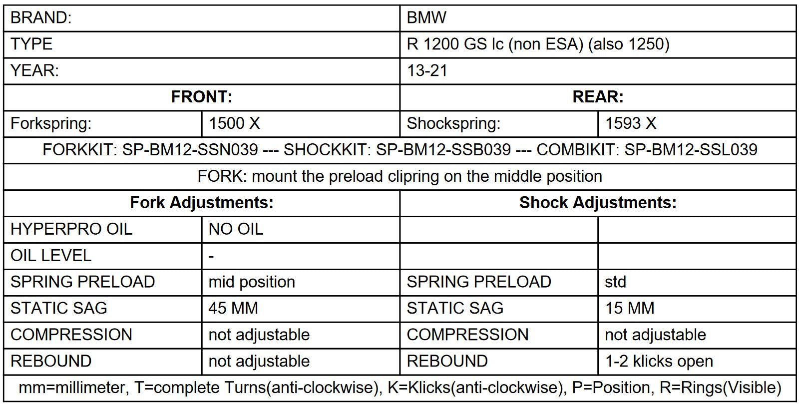 Цей комплект прогресивних змінних пружин був розроблений, щоб ідеально відповідати BMW R1200GS(LC)/R1250GS і запропонувати «надзвичайне покращення» реакції та більшу безпеку в екстремальних ситуаціях. Заміна передніх і задніх пружин призведе до значного покращення та отримання більшого задоволення від мандрівки на вашому мотоциклі. Інформація: підходить лише для *BMW R1200GS(LC)/R1250GS 2013-2023 / без BMW Dynamic ESA*Поставка включає детальні інструкції зі встановлення (німецькою/англійською)Наша рекомендація: переобладнання змінних пружин має проводитись у спеціалізованій майстерні, особливо для амортизаторів ESA. У комплект поставки входить - Запасна передня пружина для оригінального амортизатора BMW. - Замінна задня пружина для оригінального амортизатора BMW. - Інструкції зі встановлення. Якщо у вас виникнуть додаткові запитання, ми будемо раді вам проконсультувати. Зв'яжіться з нами.