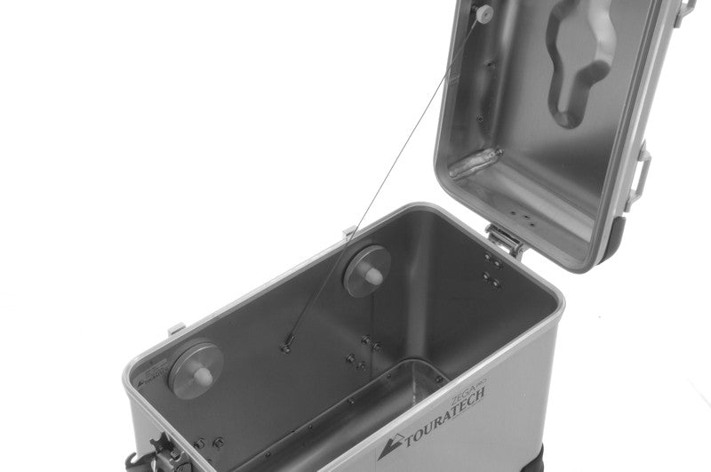 Раніше наші попередньо встановлені кофри Touratech ZEGA Pro були доступні лише в комплекті з полицями для багажу. Тепер вони доступні і окремо. Як особливість, монтажні кронштейни, які використовуються для кріплення кофра до стійки, попередньо встановлені компанією Touratech. Тепер немає потреби у трудомістких вимірюваннях і свердлінні, а незакріплені або ковзаючі кофри залишилися в минулому. Попередньо встановлений кофр ідеально підходить до полиці для багажу Touratech. Замикаючі механізми, які керуються зсередини, надійно кріплять вашу сумку до полиці та запобігають крадіжці. Зняти кофр просто і не вимагає інструментів. У сучасному дизайні та надсучасній конструкції наші розробники створили справжній шедевр у ZEGA Pro. Легкий і водночас міцний футляр доступний у версії об’ємом 38 літрів, повністю виготовлений з алюмінію товщиною 1,5 мм, водо- та пилонепроникний, виготовлений відповідно до найвищих стандартів – ми ні в якому разі не збиралися погоджуватися на базову пластикову конструкцію, яка була просто модифікована декількома шматочками формованого алюмінію! Кришка і основа ZEGA Pro зварені, завдяки чому досягається максимальна жорсткість з'єднань, а основа і зовнішня оболонка мають високоякісні заклепки (ні нам, ні вам, ніяких дешевих шпильок). Ви не побачите негерметичних зварних швів по краях. Високоякісні силіконові ущільнювачі забезпечують максимальний захист вмісту цього футляра. Надійна захисна смуга вздовж корпусу пригвинчується, і тому її легко замінити за необхідності - наприклад, після падіння. Те ж саме стосується міцних захисних куточків на кришці, яка знімається повністю або може бути відкрита лише з одного боку - фіксатори подвоюються як петлі. ZEGA Pro приваблює не лише своїми технологіями та майстерністю, але також багатьма продуманими рішеннями щодо деталей і сучасним захищеним дизайном - округлі лінії виробу справді привертають увагу. Так, наприклад, до кришки можна додати розумну ручку. Чотири вушка для кріплення лише трохи підносяться над поверхнею корпусу, тому вони також є ідеальним місцем. Деякі інші переваги ZEGA Pro полягають у тому, що його легко відкрити, щоб дістати рулон багажу та наш широкий асортимент аксесуарів. Спеціальні системи автомобіля, напр. для BMW R 1200 GS також доступні. Розумні штрихи ZEGA Pro включають геніальну систему замків, яка є міцною та надійною, але простою в експлуатації. Переваги з першого погляду:- автоматичне замикання запобігає випадковому відкриттю замків- встановлені замки можна замінити або додати пізніше без свердління або підпилювання- одночасне замикання встановлених замків доступне без додаткової плати; також доступний з тими самими замками, що й навігаційні кронштейни та масляні пробки. Алюмінієвий кофр ZEGA Pro 38 літрів: Розміри: 443 мм x 243 мм x 393 мм Вага: приблизно 5,2 кг