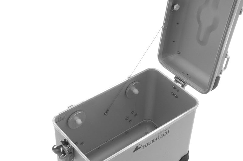Раніше наші попередньо встановлені кофри Touratech ZEGA Pro були доступні лише в комплекті з полицями для багажу. Тепер вони доступні і окремо. Як особливість, монтажні кронштейни, які використовуються для кріплення кофра до стійки, попередньо встановлені компанією Touratech. Тепер немає потреби у трудомістких вимірюваннях і свердлінні, а незакріплені або ковзаючі кофри залишилися в минулому. Попередньо встановлений кофр ідеально підходить до полиці для багажу Touratech. Замикаючі механізми, які керуються зсередини, надійно кріплять вашу сумку до полиці та запобігають крадіжці. Зняти кофр просто і не вимагає інструментів. У сучасному дизайні та надсучасній конструкції наші розробники створили справжній шедевр у ZEGA Pro. Легкий і водночас міцний футляр доступний у версії об’ємом 45 літрів, повністю виготовлений з алюмінію товщиною 1,5 мм, водо- та пилонепроникний, виготовлений за найвищими стандартами – ми ні в якому разі не збиралися погоджуватися на базову пластикову конструкцію, яка була просто модифікована декількома шматочками формованого алюмінію! «І-S»: анодована версія ZEGA Pro не тільки блищить у своєму неймовірному натуральному алюмінієвому вигляді, але й запобігає тертю всередині корпусу. Надтовстий, високоякісний анодований шар забезпечує дуже особливий захист для поверхні та допомагає запобігти знебарвленню. Кришка та основа ZEGA Pro зварені, що забезпечує максимальну жорсткість з’єднань, а основа та зовнішня оболонка мають високоякісні заклепки (жодних дешевих шпильок ні для нас, ні для вас!). Ви не побачите негерметичних зварних швів по краях. Високоякісні силіконові ущільнювачі забезпечують максимальний захист вмісту цього футляра. Надійна захисна смуга вздовж корпусу пригвинчується, і тому її легко замінити за необхідності - наприклад, після падіння. Те ж саме стосується міцних захисних куточків на кришці, яка знімається повністю або може бути відкрита лише з одного боку - фіксатори подвоюються як петлі. ZEGA Pro приваблює не лише своїми технологіями та майстерністю, але також багатьма продуманими рішеннями щодо деталей і сучасним захищеним дизайном - округлі лінії виробу справді привертають увагу. Так, наприклад, до кришки можна додати розумну ручку. Чотири вушка для кріплення лише трохи підносяться над поверхнею корпусу, тому вони також є ідеальним місцем. Деякі інші переваги ZEGA Pro полягають у тому, що його легко відкрити, щоб дістати рулон багажу та наш широкий асортимент аксесуарів. Спеціальні системи автомобіля, напр. для BMW R 1200 GS також доступні. Розумні штрихи ZEGA Pro включають геніальну систему замків, яка є міцною та надійною, але простою в експлуатації. Переваги з першого погляду:- автоматичне замикання запобігає випадковому відкриттю замків- встановлені замки можна замінити або додати пізніше без свердління або підпилювання- одночасне замикання встановлених замків доступне без додаткової плати; також доступні з тими самими замками, що й навігаційні кронштейни та масляні пробки. ZEGA Pro alucase "And-S" 45 літрів Розміри: 443 мм x 283 мм x 393 мм Вага: приблизно 5,6 кг Шолом не входить.