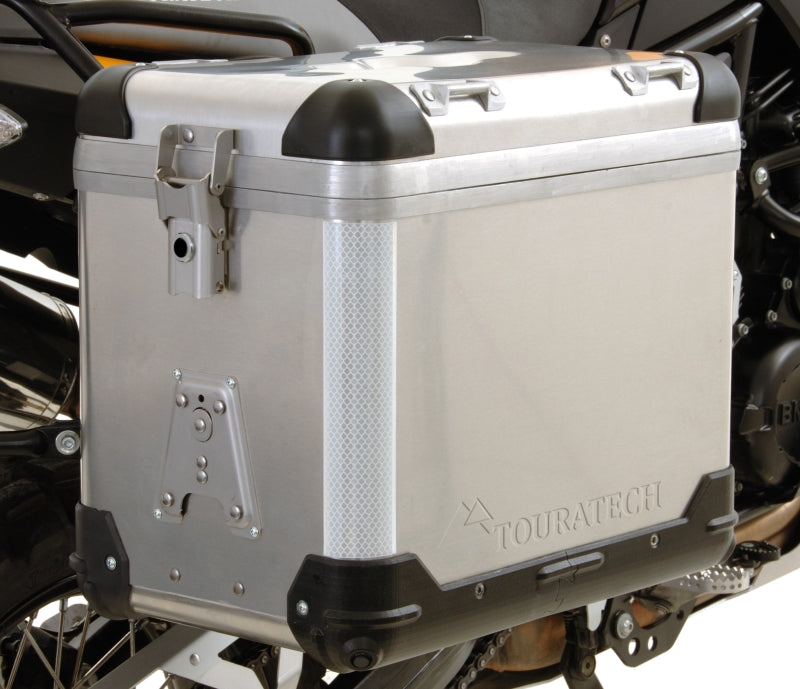 Безпека перш за все! Ми пропонуємо ці світловідбиваючі смуги 3M, вирізані спеціально для країв ZEGA Pro / ZEGA Pro2. Цей же матеріал використовується для підсвічування причепів вантажних автомобілів. Добре помітний і відповідної міцності. Деталі в комплекті: 2 частини Ширина: 55 мм ПРИМІТКА: Підходить до алюмінієвих корпусів універсально! F.ex. оригінальний алюмінієвий корпус BMW R1200GS-ADV або BMW F800GS.