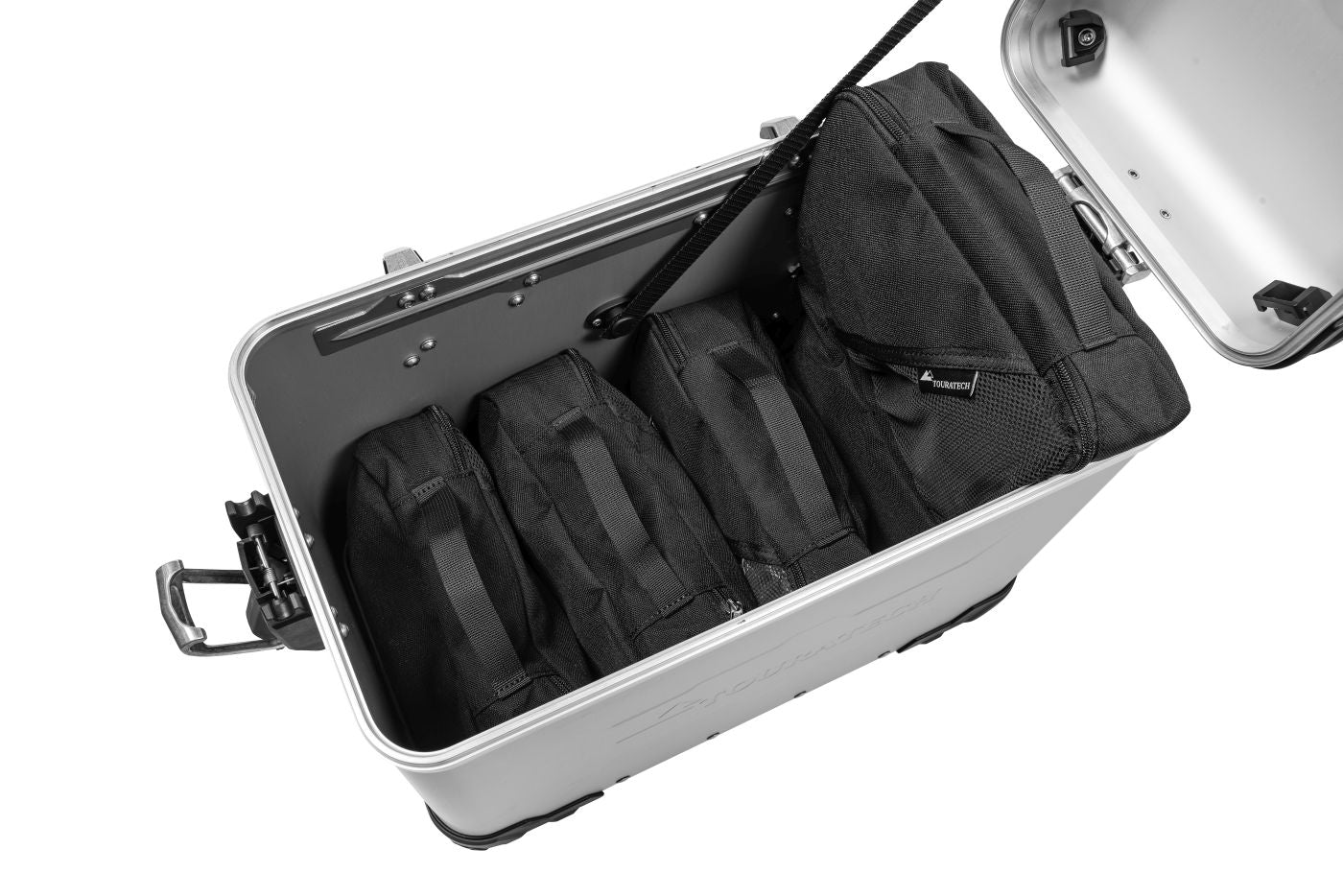 З внутрішніми сумками Touratech ви отримуєте оптимальну систему організації у вашому кошику ZEGA, оригінальному чохлі BMW Adventure, оригінальному алюмінієвому чохлі KTM... Ваш багаж також правильно організований у наших різноманітних м’яких бічних сумках із оптимізаторами об’єму Touratech.