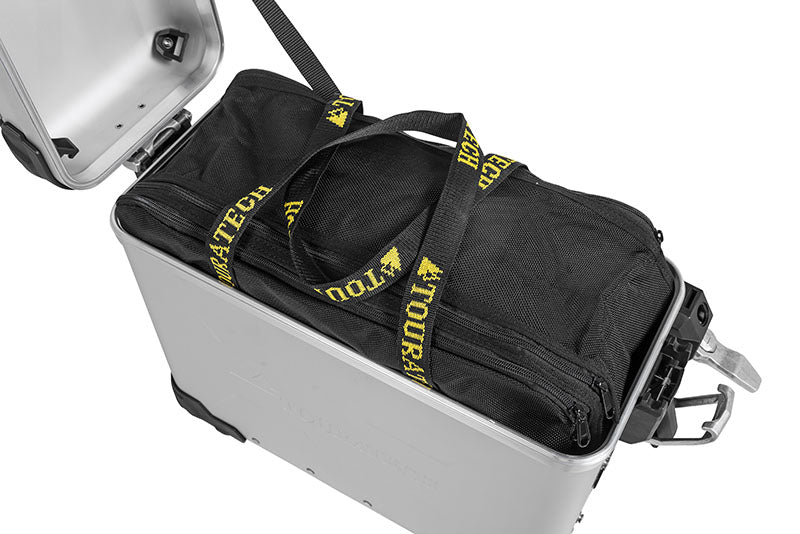 Тримайте все під рукою, легко діставайте та пакуйте речі, тримайте свій намет або готельний номер упорядкованим, а алюміній не потирається на вашому одязі — це надміцна кофр ZEGA. Ця спортивна та дорожня кофр була спеціально розроблена для наших чохлів ZEGA Evo. Якщо кофр ZEGA неповна, її можна скласти, щоб заощадити місце. Має дві практичні ручки для перенесення. Вона має безперервну блискавку з боків для легкого завантаження поза чохлом і подвійну блискавку зверху для легкого доступу до вашого багажу, коли кофр ZEGA знаходиться в чохлі. Виготовлена з надзвичайно міцного, водовідштовхувального та брудонепроникного нейлону. Розміри: прибл. 18 x 42 x 34 см. Ця внутрішня кофр для футляра об’ємом 31 л сумісна з усіма футлярами Touratech ZEGA на 31 літр і оригінальним алюмінієвим дорожнім футляром (права сторона) BMW R1250 GS Adventure / F850GS Adventure. Артикул 01-050-0847-0 необхідний для лівого оригінального алюмінієвого корпусу.
