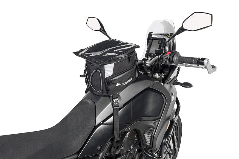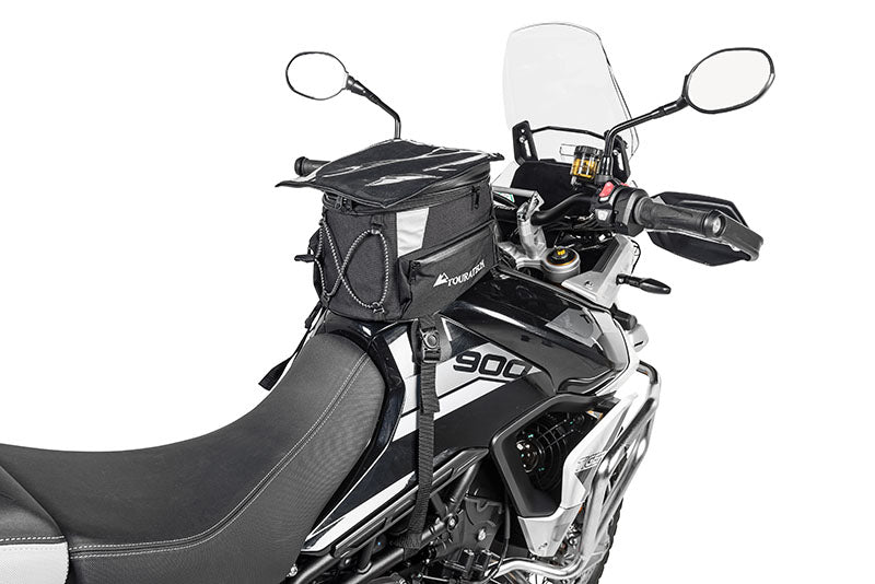 Сумка Ibarra Midi ідеально підходить для компактних баків переважної більшості туристичних ендуро, таких як Yamaha Tenere 700, KTM 890 Adventure, Honda Africa Twin або Triumph Tiger 900. Midi підходить навіть до BMW F 800 GS, як костюм, пошитий на замовлення. Чудова посадка та необмежена свобода рухів роблять Ibarra Midi вірним супутником навіть на складних бездоріжжях. Основне відділення, що розширюється, дві зовнішні кишені на блискавці та знімна кишеня для карт забезпечують достатній обсяг для тривалих подорожей. Втулка для кабелю та кишеня для кредитної картки на кришці відповідають стандарту Touratech. Сумка-бак виготовлена з високоякісної сертифікованої Cordura. Еластичні шнурки з швидкознімними застібками, фірмові блискавки від YKK і світловідбиваючі елементи від 3M доповнюють високоякісні характеристики. Спеціальний протиковзкий матеріал на нижній стороні та індивідуальні регульовані ремені безпечно фіксують кофр на танку. Геніально простий замок на ремінці та застібки-замки дозволяють легко заправлятися. Зверніть увагу: за потреби використовуйте захисну плівку для фарби! Розмір: (Д x Ш x В) прибл. 30 x 15 x 19/26 см Об'єм: прибл. 7/10 літрів