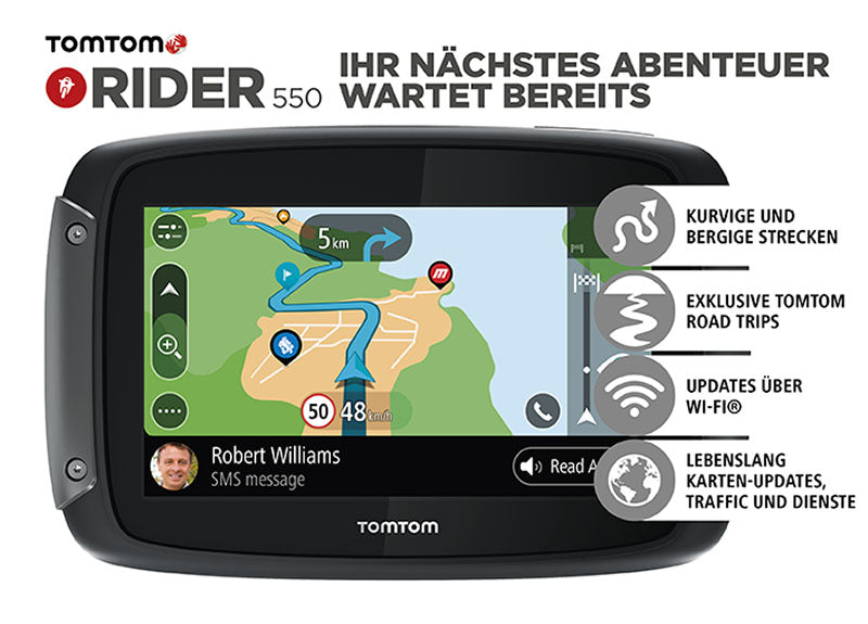 Ваша наступна пригода вже чекає на вас! TomTom Rider 550 – ідеальний компаньйон! Його чотирьохядерний процесор надшвидко розраховує маршрути. Легко отримуйте доступ до функцій свого смартфона за допомогою голосового керування за допомогою Siri та Google Now, включаючи сповіщення через гарнітуру. Отримуйте останні оновлення маршруту та системи під час туру, навіть через готельний Wi-Fi - без кабелів і без комп'ютера! Використовуючи різні варіанти планування маршруту, ви заздалегідь вирішуєте, наскільки звивистим чи гірським буде ваш тур. Виберіть регіон, де ви хочете покататися, і TomTom знайде для вас найбільш захоплюючий маршрут. Для більш репрезентативного перегляду просто перейдіть до портретного формату, щоб побачити більше поворотів на маршруті. Дисплеєм можна без проблем працювати в рукавичках. Преміум-інформація про дорожній рух у режимі реального часу дозволяє об’їжджати затори та закриті дороги. Крім того, Rider 550 забезпечує глобальне покриття карт, включаючи безперервне оновлення карт. ОСНОВНІ ОСОБЛИВОСТІ: ШВИДКИЙ ЧОТИРИЯДЕРНИЙ ПРОЦЕСОРTOMTOM ДОРОЖНІ ПОЇЗДКИ ПОВІДОМЛЕННЯ НА СМАРТФОНІ ОНОВЛЕННЯ ЧЕРЕЗ WI-FIGOOGLE ЗАРАЗ ТА СУМІСНІСТЬ З SIRI МОЖНА ПОВЕРХНЯ ЄМІСНОГО СЕНСОРНОГО ЕКРАНУ 10,9 см (4,3 дюйма) без відблиску КЕРУЙТЕСЯ В РУКАВИЧКАХ НАВІГАЦІЯ ПО ЗВИВАНОМУ МАРШРУТУ ГІРСЬКІ МАРШРУТИ ВІДОБРАЖЕННЯ В КНИЖКОВОМУ ТА АЛЬБОМНОМУ ФОРМАТАХ ІНТЕРФЕЙС BLUETOOTH¬Ѓ ДЛЯ ГАРНІТУРИ ТА ОБМІНУ ДАНИМИ З ІНШИМИ ПРИСТРОЯМИ ЖИТТЄВІ КАРТИ СВІТУ (ВСТАНОВЛЕНО 43 КРАЇНИ ЄВРОПИ; КАРТИ СВІТУ ДЛЯ ЗАВАНТАЖЕННЯ КАМЕРИ РАДАРА LIFETIME TOMTOM TRAFFICLIFETIME ВМІСТ ТА ВИКОРИСТАННЯ:- швидкий чотирьохядерний процесор розраховує маршрути ще швидше- найкращі маршрути у світі- Сповіщення смартфона: ваш новий Rider 550 читатиме ваші сповіщення через гарнітуру- вбудований порт Wi-Fi дозволяє оновлювати прошивку та маршрути без ПК- Доступ до смартфону (музика, дзвінки, повідомлення, тощо) за допомогою голосового керування.– Ємнісний дисплей без відблисків 10,9 см (43 дюйми) адаптується до умов освітлення.– Покращений сенсорний екран; оптимізована робота в товстих і тонких рукавичках.– Швидше й точніше реагує на дотики під час дощу.– Попередньо встановлений поточний матеріал для карт для 43 країн Європи.– Карти світу для понад 160 країн можна завантажити безкоштовно.– Попередньо встановлені спеціальні пункти призначення, як-от місця зустрічі мотоциклістів і музеї, готелі та гірські перевали.- Попередження про аварії та затори.- Оновлення карт протягом усього життя: безкоштовні оновлення карт протягом усього життя.- Виберіть звивисті маршрути, знайдіть найзахопливіші звивисті маршрути та уникайте нудних подорожей по прямій.- Виберіть профіль висоти, залишайтеся на рівні моря або підніміться на найвищі вершини.- Плануйте тур: просто виберіть регіон, де ви хочете покататися, і TomTom знайде найзахопливіший маршрут для ви.- Заздалегідь сплануйте свій тур на комп’ютері та надішліть цю інформацію на ваш TomTom Rider.- Прямий введення пункту призначення за допомогою інтуїтивно зрозумілої функції пошуку.- Параметри відображення як у портретному, так і в альбомному форматі.- Поділіться своїм маршрутом з іншими водіями перед початком або після повернення.- Зареєструйте свій тур і відчуйте пригоду знову в будь-який час.- Довічна інформація про дорожній рух у реальному часі на вашому пристрої.- Довічне попередження дл