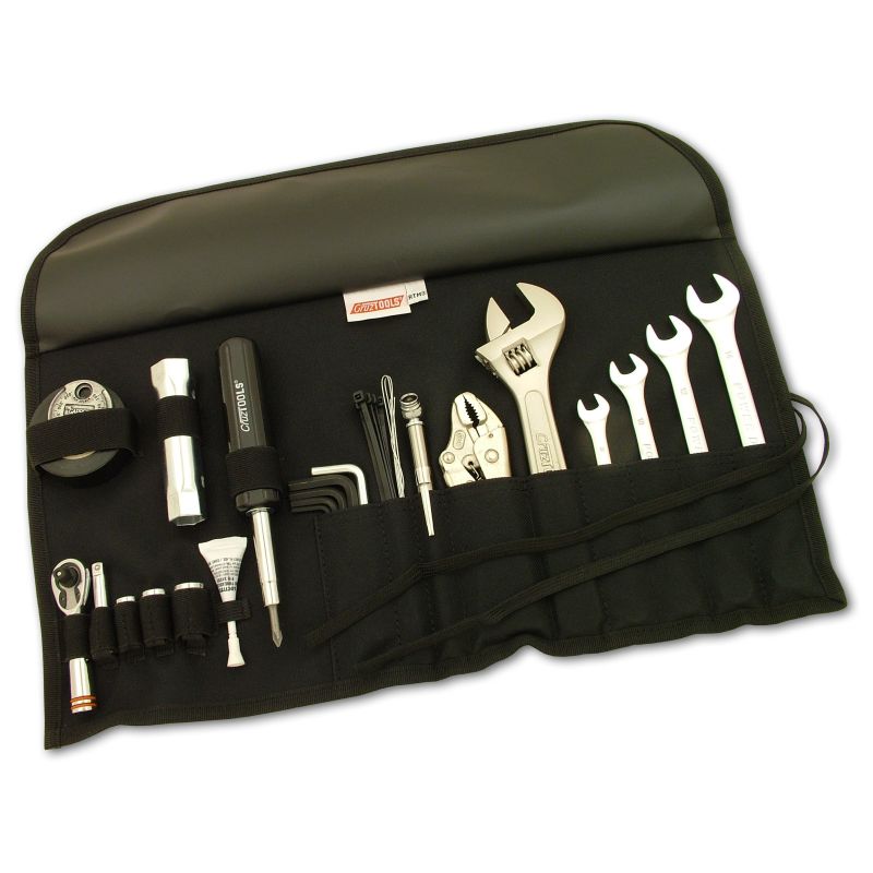 Для сучасних мотоциклів потрібні спеціальні інструменти. Це стосується японських мотоциклів (Honda, Yamaha, Kawasaki, Suzuki), а також європейських мотоциклів (Ducati і Triumph). Ми перевищили ці потреби за допомогою цього набору інструментів, який містить інструменти найвищого класу та інші придорожні предмети в міцну сумку. Вміст: - комбіновані гайкові ключі: 8 мм, 10 мм, 12 мм, 14 мм - інші гайкові ключі: 20,32 см (8 дюймів) Регульовані- Щипці: 13,97 см (5,5 дюймів) вигнуті фіксатори губок- 0,64 см (1/4") набір приводних головок: міні-тріскачка на 48 зубів, подовжувач 5,08 см (2"), 8 мм, 10 мм, 12 мм- Шестигранні ключі: 3 мм, 4 м, 5 мм, 6 мм- Викрутка: реверсивна 6-в-1 (2 хрестоподібні, 2 шліцеві, 6-мм і 8-мм гайковерти)- Гніздо для свічки запалювання 13/16 мм- Датчик зазору для свічки запалювання- Датчик тиску в шинах (кПа-шкала! -> 100 кПа=1 бар)- Різне: Locktite, стрічка, кабельні стяжки (5 шт.), механічний дріт- Сумка: згорнута подвійна панель із поліестеру 600d з підкладкою з ПВХ (розмір у рулоні: 24 x 9 см)