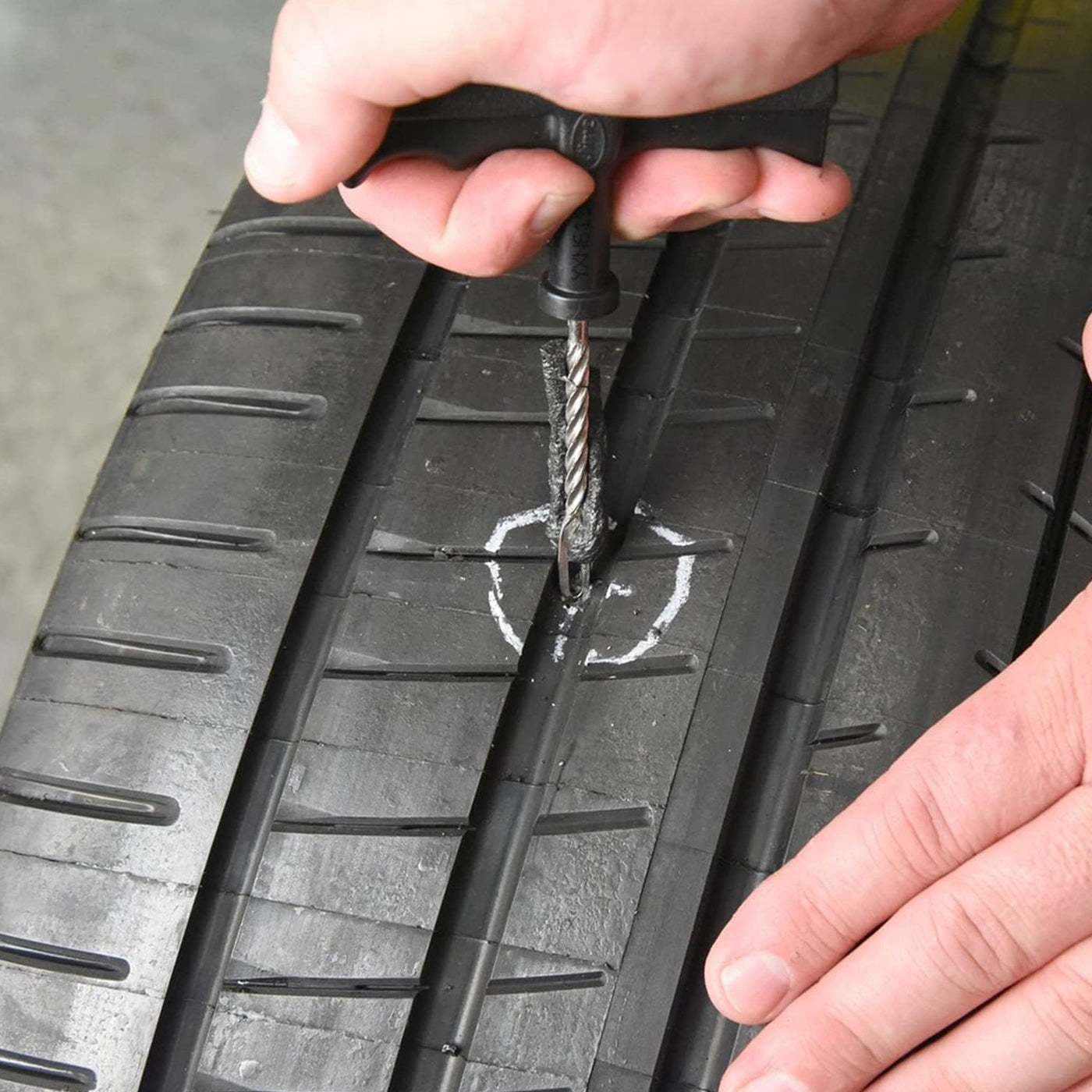 Набір для ремонту безкамерних шин із 8 предметів із ущільнювальними смужками для ремонту шин, інструментами та новим Plug Bond від Slime — для мотоциклів, квадроциклів, квадроциклів, автомобілів, позашляховиків, газонокосарок, причепів, сільського господарства та багатьох інших — набір для ремонту шин із новим, нетоксичним, нешкідливим і запатентованим Slime Plug Bond — для швидкого та легкого ремонту проколів без необхідно зняти колесо! - підходить лише для екстрених ситуацій і короткочасного ремонту мотоциклів і автомобілів: з міркувань безпеки віддайте шину на ремонт спеціалісту відразу після використання! - вміст: розгортка, інструмент для вставки з Т-подібною рукояткою, 5x вулканізаційних ущільнювальних смуг, заглушка - нові ущільнювальні смужки можна придбати окремо