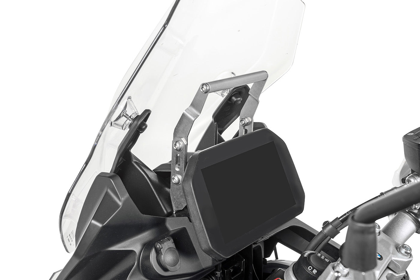 Щоб розташувати GPS-пристрій на F850GS так, щоб ви могли його правильно бачити, ми розробили міцний адаптер кронштейна з нержавіючої сталі майже для всіх кронштейнів керма Touratech GPS. Таким чином, ви можете належним чином розташувати свій GPS-пристрій над приладами вашого F850GS. Цей адаптер кронштейна вбудовано в передню частину F850GS. Кронштейн має достатню ширину, щоб ви могли, наприклад, розташувати GPS-пристрій у будь-якому місці. Регулювання висоти запобігає закриттю GPS-пристроїв на прилади. Це не тільки для кронштейнів для керма Touratech GPS!
