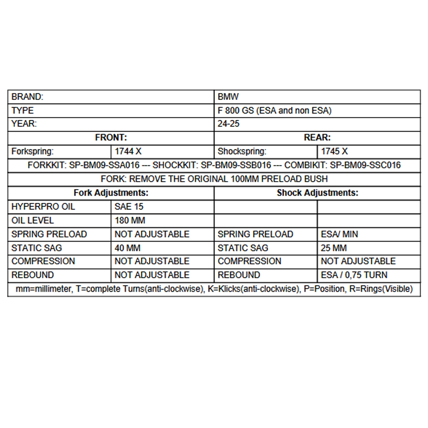 Ці прогресивні змінні пружини ідеально підходять до оригінальної підвіски BMW F800GS (2024-). Таким чином, передні та задні амортизатори краще налаштовані для вимог туристичного мотоцикла. Ви також відчуєте значно покращену реакцію та вищі резерви на межі. Інформація: *Підходить лише для BMW F800GS (2024-)*Змінні пружини можна використовувати як із обладнанням ESA, так і без нього. Об’єм поставки: o Пружини вилки. o Замінна пружина для оригінального амортизатора. o Інструкції з встановлення. o Відповідне масло для вилки (SAE 15). o Паста для покращення ковзання трубок вилки. Наша рекомендація: Доручіть переобладнання спеціалізованій майстерні. У вас є додаткові запитання? Ми будемо раді проконсультувати вас особисто. Електронна пошта: suspension@touratech.de ; Телефон: +49 (0)7728-9279-1555 Будь ласка, скористайтеся нашою формою перевірки шасі та надішліть нам заповнену форму.