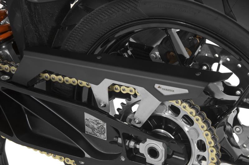 Ядро з майже незнищувальної нержавіючої сталі утримує легку алюмінієву кришку. Форма і функція більше не є протиріччям. Поєднання цих двох матеріалів додасть вашому KTM щось особливе! Захист ланцюга Touratech набагато міцніший, ніж оригінальний пластиковий, що робить його більш придатним для великих туристичних ендуро, таких як 1190 Adventure. Також підходить для KTM Super Adventure S, R, T (з 2017 року). Захист ланцюга легко та швидко встановлюється, оскільки він кріпиться до наявних точок кріплення.