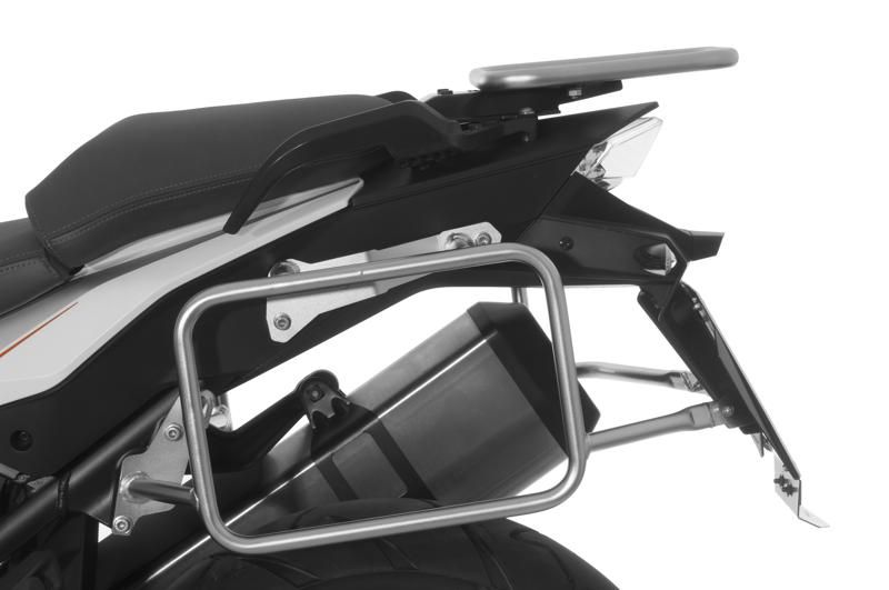 Міцна стійка для багажу виготовлена з 18-мм труби з нержавіючої сталі. За допомогою спеціальних фіксуючих затискачів багажник кріпиться до хвоста стійки та наявних точок кріплення. Дуже міцна конструкція з хрестовиною, яка також справляється з важкими турами по бездоріжжю та водночас елегантно підходить до загального вигляду KTM 1190 ADV/R. Також підходить для KTM Super Adventure S, R, T (з 2017 року)