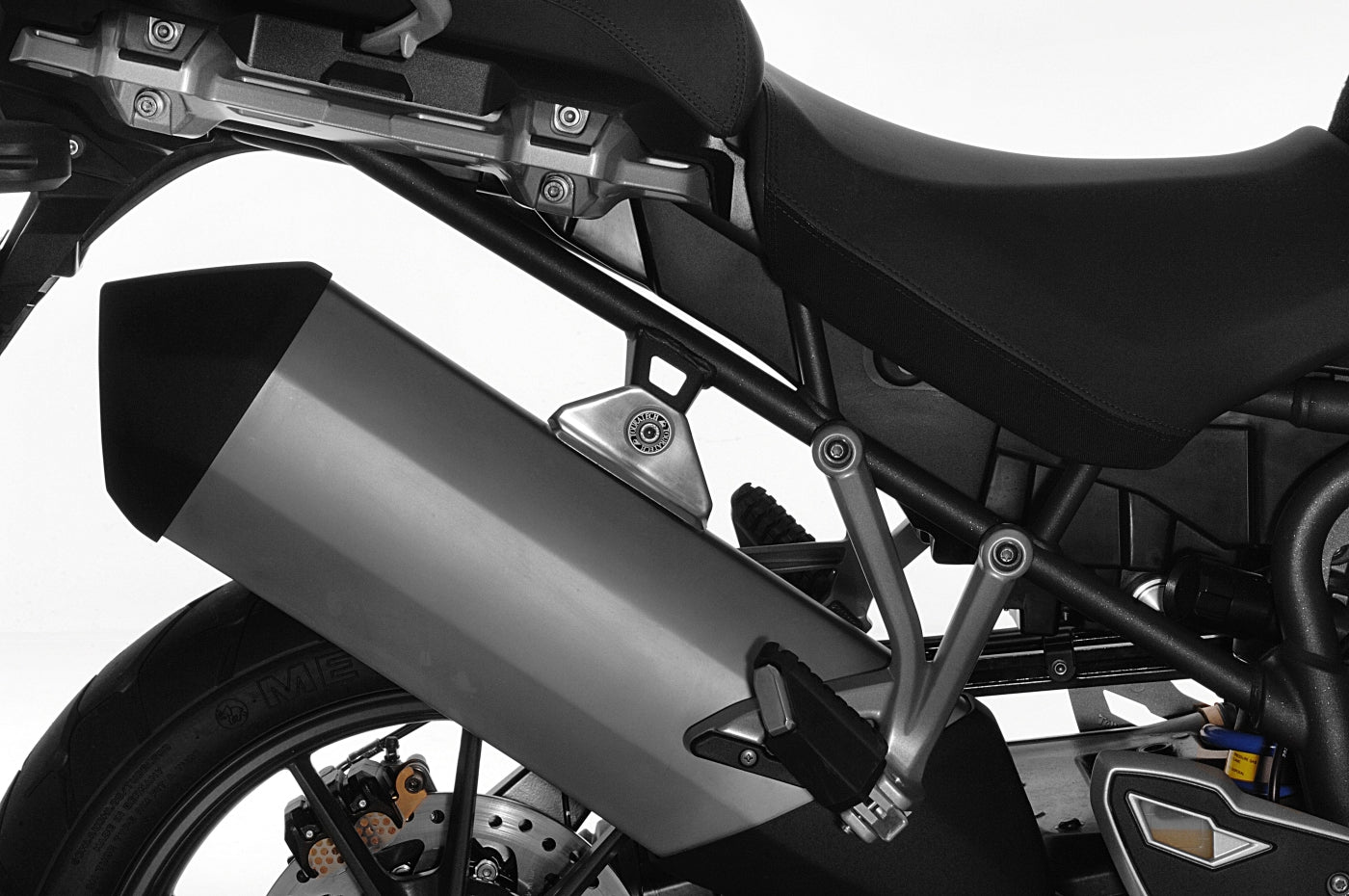 Кришка Touratech для кріплення заднього глушника виточена з цілісної деталі та замінює простий болт, який використовується для кріплення глушника. Доступний у кольорі золотого, червоного, чорного або титанового кольору, який підходить до кришки масляної заливної горловини Touratech, пробок рами або кришки підшипника маятника. Візуальна родзинка.