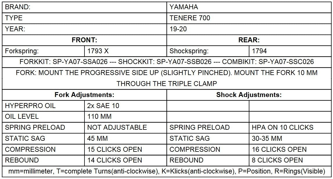 Набір Touratech Suspension World Travel Edition Level2 для Yamaha Tenere 700 є правильним вибором для поїздок на далекі відстані та подорожей. Більше продуктивності та комфорту для вашої Yamaha 700 Tenere з амортизатором Touratech Suspension Level2. Незалежно від того, чи збираєтеся ви проїхатися через багато кривих або провести гарну подорож з друзями, великий діапазон регулювання дозволить вам отримати кращі налаштування балансу та амортизації, ніж це можна зробити зі стандартними компонентами. Емульсійний амортизатор Level2 можна регулювати за допомогою маховика, який регулює попереднє натяг гідравлічної пружини. бути адаптованим до навантаження великого дорожнього багажу. Прогресивні пружини вилки ідеально підходять до вилки Yamaha 700 Tenere. Вони роблять вилку кращою для вимог мотоциклетного туризму. Ви також відчуєте значно покращену реакцію та більші резерви в екстремальних ситуаціях. Короткий огляд фактів:=> Цей КОМПЛЕКТ підвіски налаштований і налаштований готовий до використання на основі нашого досвіду роботи з Yamaha Tenere 700.=> Параметри: вага транспортного засобу / точка повороту амортизатора / конструктивні обмеження / тестові поїздки.=> За допомогою цього НАБОРУ задня і передня частини мотоцикла регулюються та знаходяться в ідеальному балансі. НАБІР підвіски, який дозволяє легко та зручно регулювати ваш мотоцикл для різних умов навантаження. Основна комплектація, встановлена тут, розрахована на водіїв вагою до 100 кг разом з багажем. Можливі модифікації для більш важкого водія (понад 100 кг) та/або якщо мотоцикл зазвичай мандрівкить з пасажиром/з багажем. У цьому випадку ми індивідуально модифікуємо амортизатор відповідно до ваших потреб, встановлюючи пружину з більшою швидкістю пружини. Будь ласка, заповніть нашу форму перевірки підвіски та надішліть її нам. Обсяг поставки: - Готовий до монтажу амортизатор Typ Level2 (01-632-5860-0) - Замінні пружини для оригінальної вилки. (01-632-5880-0)- Відповідна олива для вилки.- Загальна ліцензія на експлуатацію- Інструкції з монтажу / посібник користувача ОНЛАЙНПідходить для: T700 T700 Rally Edition (не Rally) Якщо у вас виникнуть додаткові запитання, ми будемо раді проконсультувати вас. Зв'яжіться з нами.